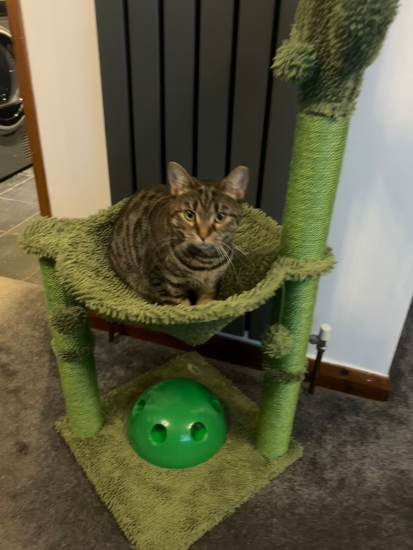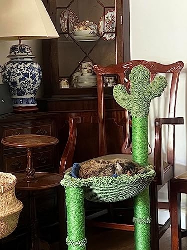 - ALL-IN-ONE CENTER: This multi-activity cat tower features a cat hammock bed, scratching post and ball toy. As a cat furniture, cactus shape adds more fun and blends in with any home decor. The different textures encourage and appeal to your furry friend.