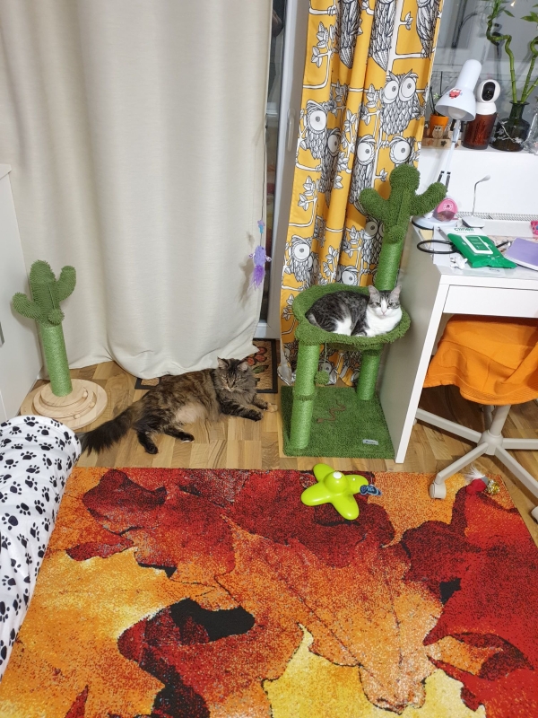 This unique cat tree from will be a decorative addition in your home with the cactus shape. The stable base allows your kitty to stretch, paw, scratch, and climb all day with total support. Covered in soft plush for safety and comfort, whilst the scratcher allow your cats to keep their claws sharp and satisfy their scratching instinct. Dangling ball toys add extra fun, keep your kitty entertained. Includes a cozy bed for cat's rest and sleep.