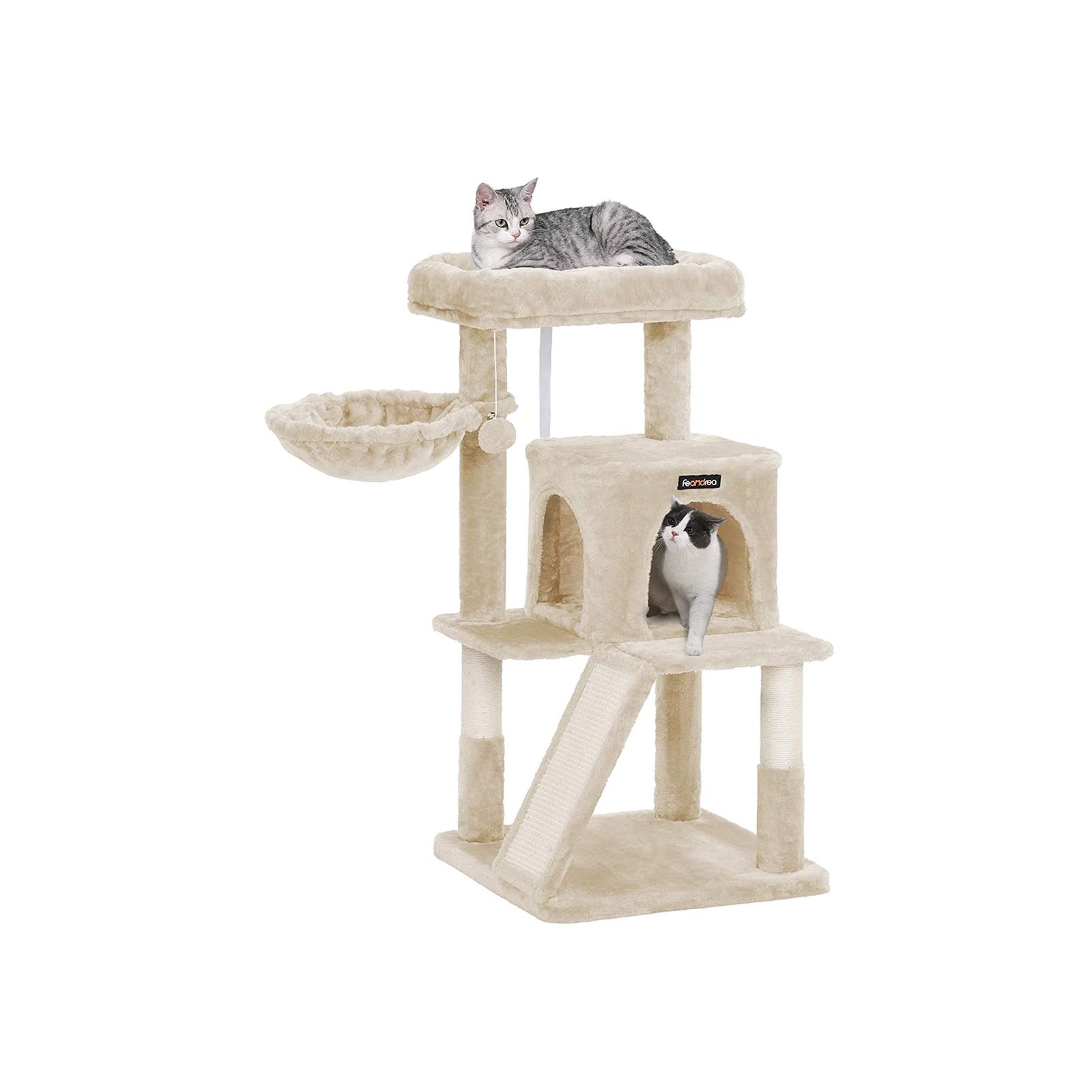 Inside the creative workshop of FEANDREA, two sweet kittens jump around, personally examining our scratching trees and giving their animal feedback. Thus, the designers of FEANDREA get to know firsthand whether the products meet the requirements of pampered whisker wearers. A Cat Tree with Many Advantages The cat tower shown above has passed the kitten test. Especially the scratching ladder, lovely and cosy cave, step-like cuddly perches, basket lounger, and posts wrapped in sisal. Whether you have a naughty tomcat or a calm old cat in your house, this cat tree sized at 48 x 48 x 96 cm (L x W x H) will always be in hot demand. So, where is your furry friend's favourite resting place? Or she just can't stop scratching on the scratching board?