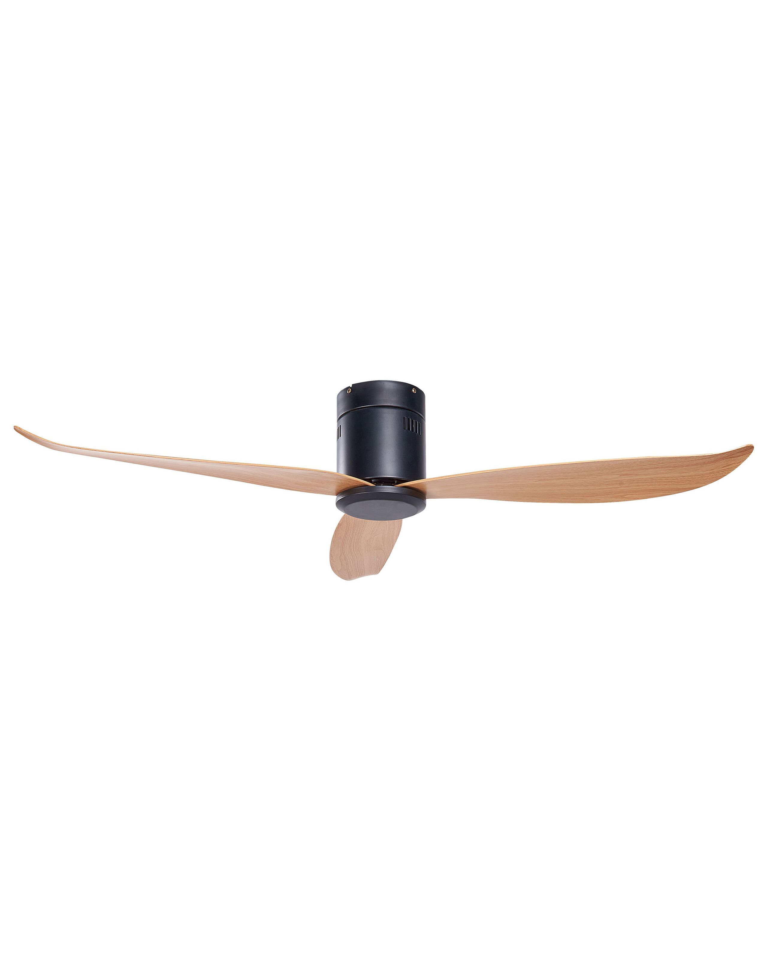 Enhance your comfort and style with our sleek ceiling fan. Operated effortlessly by a practical remote, you have full control to set the fan's speed and a timer for up to 8 hours. The fan boasts a durable metal body with a stylish matt finish, while the black colour adds a touch of sophistication. The three blades feature a wood-like finish, offering a natural and elegant aesthetic. Perfect for any room, this ceiling fan combines functionality with a modern design, providing a refreshing breeze and a stunning addition to your space. Details: Color: Black, Light Wood. Main material: Iron. Additional material: Synthetic Material. Weight: 6 Assembly: Full Assembly Required
