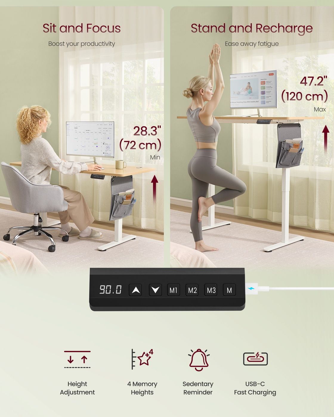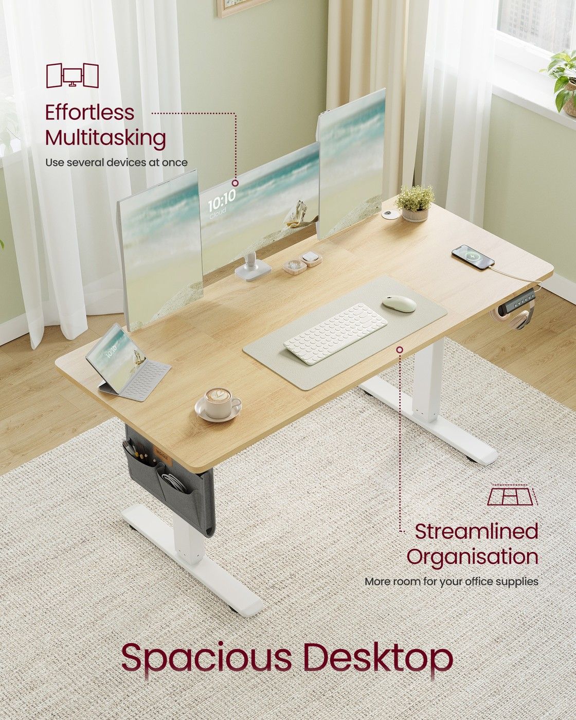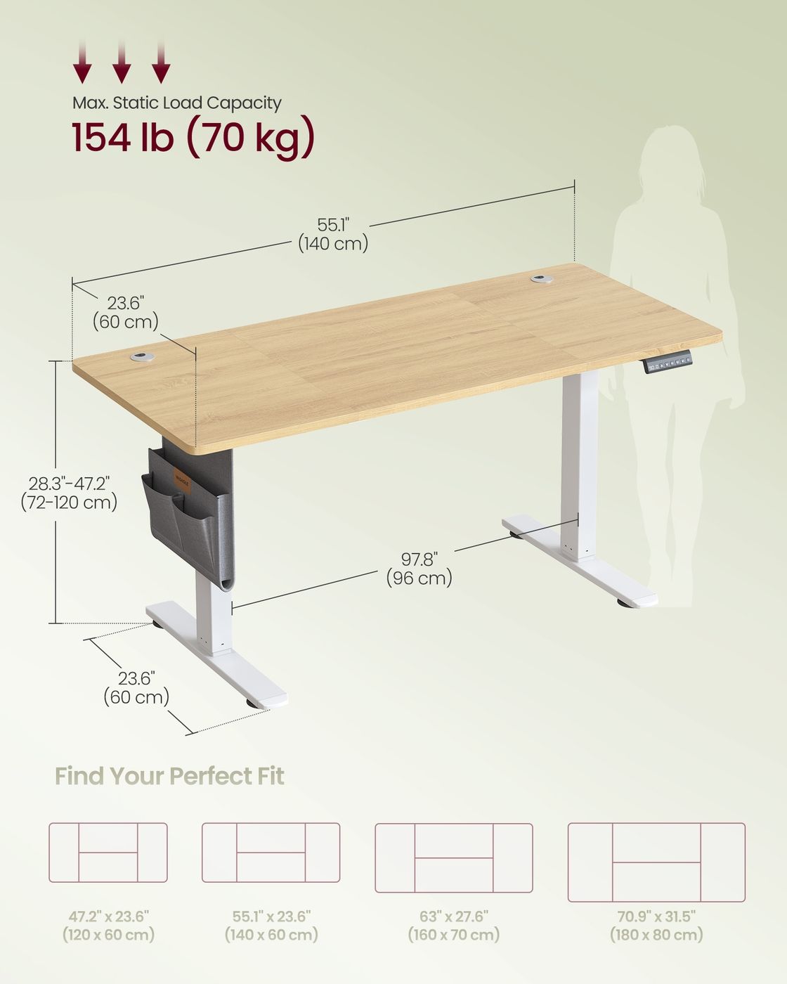 CELSEA Electric Office Standing Desk with Height Adjustable 140cm - Light Oak and White