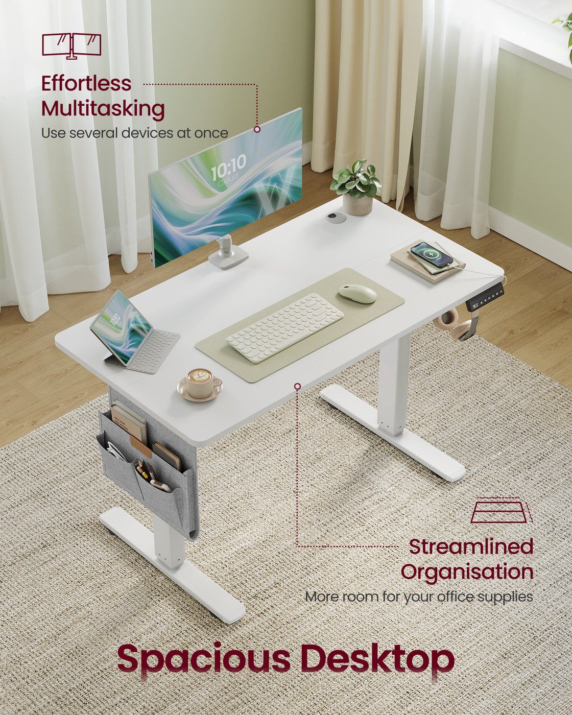 Transform your room using the CELSEA Office Deskh with Height Adjustable - White. This versatile furniture piece offers a stylish way to organise your home while adding a modern touch to any room. Crafted from durable materials, it provides a strong and reliable structure for everyday use. Perfect for living rooms, bedrooms, offices or hallways. It combines practicality with contemporary appeal. Made to offer hassle-free assembly and sturdy support.