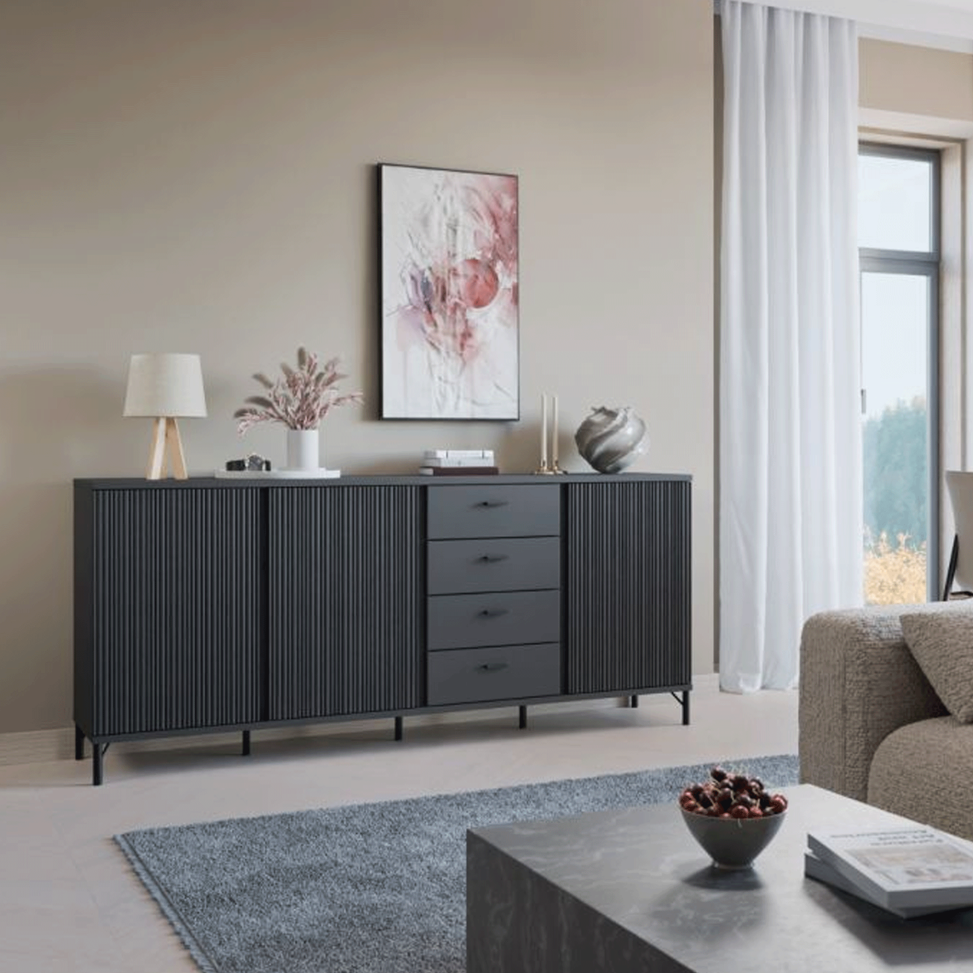 CENDRIX 3 Doors Sideboard with 4 Drawers - Black