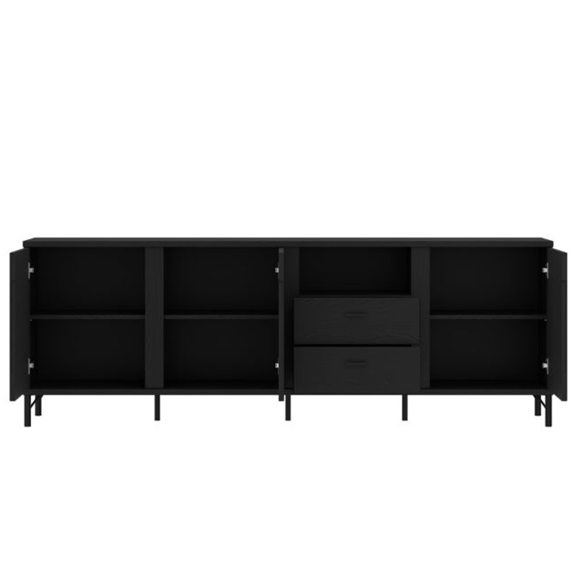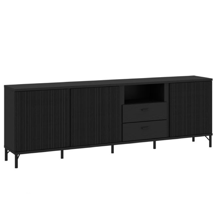 Organise your living room with the CENDRIX Black TV Cabinet featuring 3 Doors and 2 Drawers. Its versatile design provides storage for electronics and accessories, while the timeless black finish enhances contemporary décor.