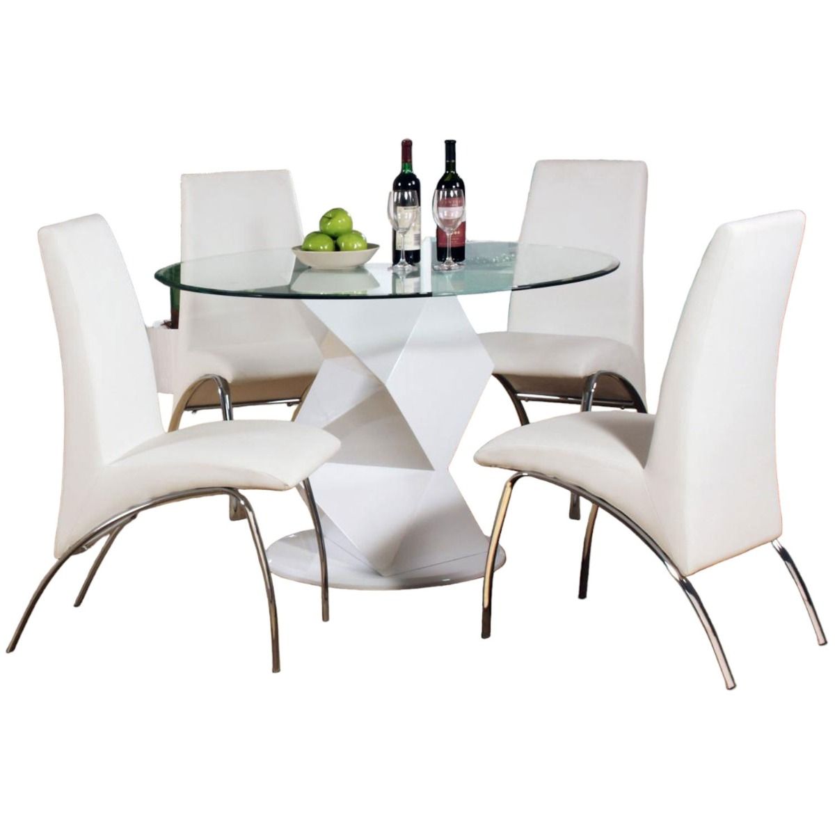 Introducing the Centralia High Gloss Dining Set with 4 Chairs, a refined addition to Home Done's exclusive furniture range. The Centralia collection combines style and functionality, and this dining set exemplifies modern elegance. The circular table, adorned in high-gloss finish, creates a contemporary focal point for your dining space. Accompanied by four PU Chrome Chairs, each piece is meticulously crafted for durability and sophistication. Elevate your dining experience with the Centralia range, where every detail reflects Home Done's commitment to quality and design.