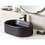 This elegant ceramic, fluted countertop basin features a sophisticated matt finish that enhances its contemporary design. Its minimalist and clean lines make it an ideal choice for modern bathroom decors, offering both functionality and aesthetic appeal.