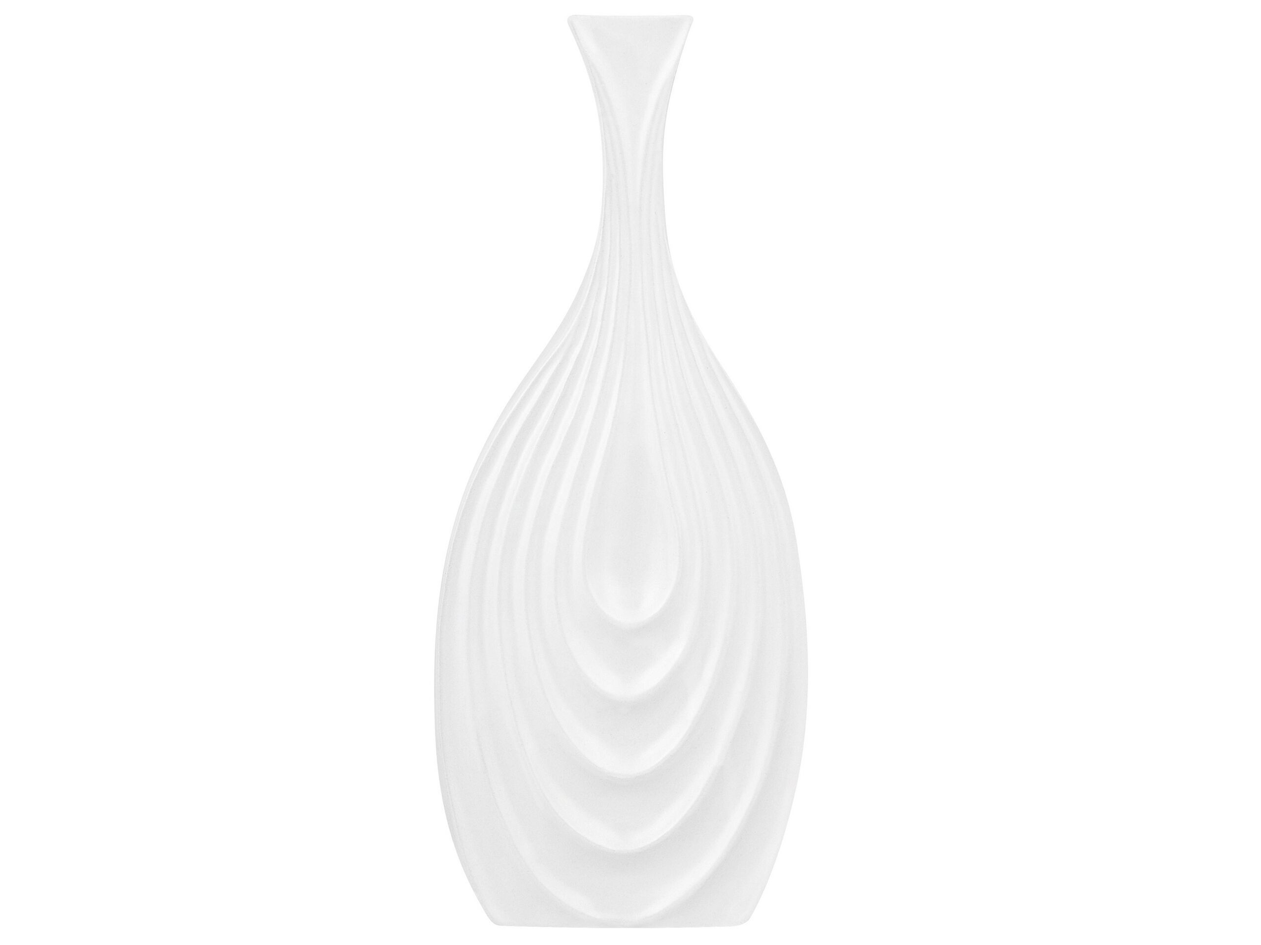 Precisely sculpted to form a marvellous composition of flowing lines, this decorative vase is a standout piece that instantly livens up any type of furniture. Solid colour combined with depths and peaks of the texture create an excellent base for palm leaves, fresh flowers, painted branches or wheat ears, while the delicate finish blends neatly with every interior, emanating elegance and class. Details: Color: White. Main material: Ceramic. Weight: 1 Assembly: Does Not Require Assembly
