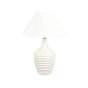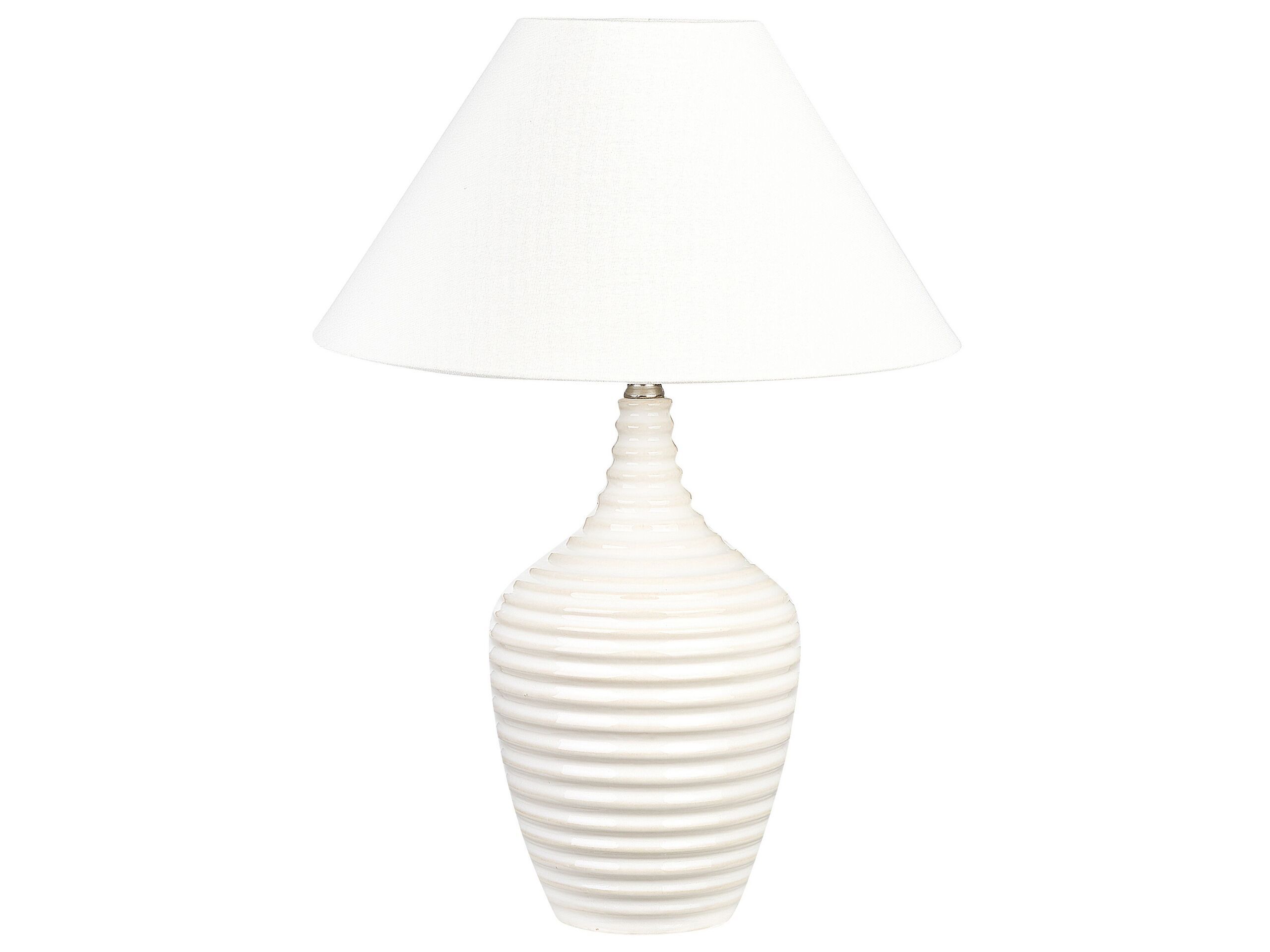 Make your interior feel unique with this exceptional table lamp. Its unique carved base turns this product into a true accent piece that will draw the attention of all your guests. Shade in the matching colour is made from high-quality linen that provides subtle, diffused light. Details: Color: Beige, White. Main material: Ceramic. Additional material: Linen. Material Composition: 100% Linen Weight: 2.8 Assembly: Partial Assembly Required