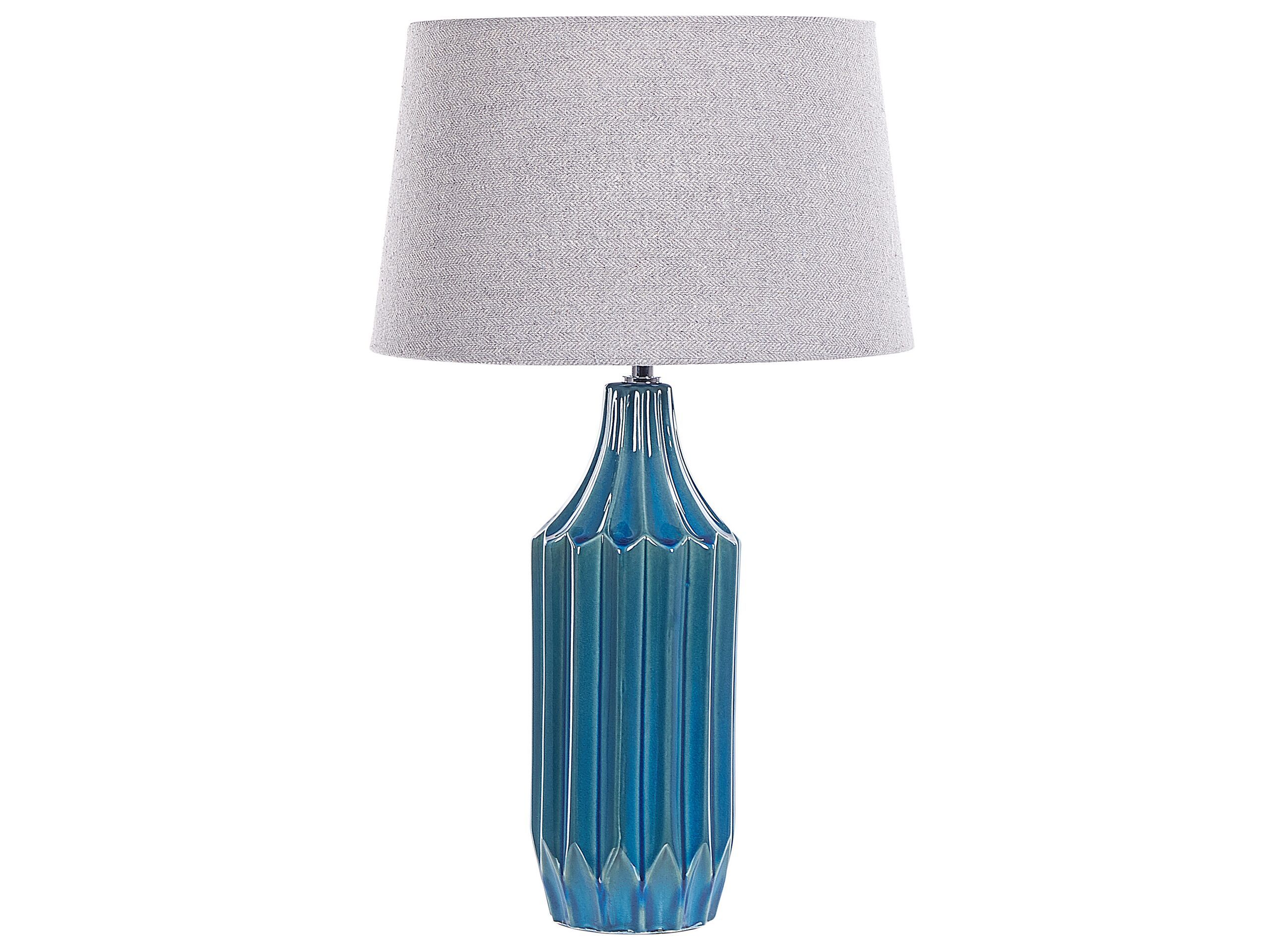 This teal blue lamp makes an elegant addition to any bedside table, chest of drawers or sideboard. Designed with a beautiful ribbed base, it will be a functional and decorative accent to any room of the house. The glossy base paired with a beige linen-like shade creates a piece that you can easily incorporate into your space. Details: Color: Blue, Grey. Main material: Ceramic. Additional material: Cotton, Linen. Material Composition: 65% Linen, 35% Cotton Weight: 2 Assembly: Partial Assembly Required