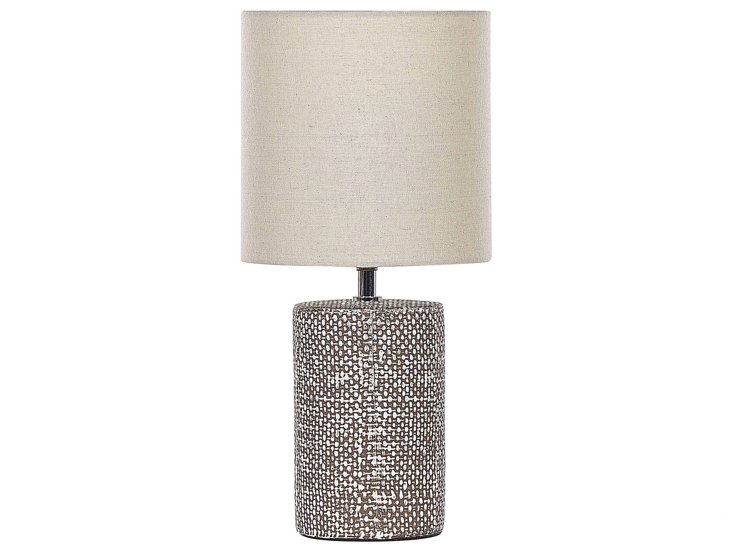 Add style to your home, and light it up with this attention drawing table lamp. The piece, crafted out of high-quality ceramic, will last for many years, even with little to no maintenance. What's more, its handmade, fabric shade will diffuse the light, so it will become pleasant and warm. Thanks to that, you'll be able to set up the lamp in various spaces - from living rooms to bedroom or home offices. Details: Color: Brown, Beige. Main material: Ceramic. Additional material: Cotton, Jute. Material Composition: 65% Jute, 35% Cotton Weight: 1 Assembly: Partial Assembly Required