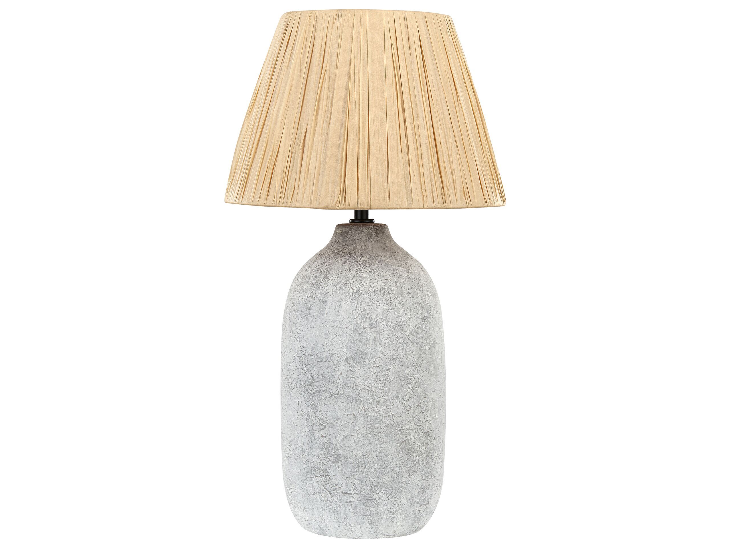 Elevate your space with this table lamp that makes for a fusion of urban charm and boho allure. The base showcases a sophisticated grey concrete appearance in smooth ceramic. Topped by a paper shade, the lamp exudes a boho, natural aura, casting enchanting patterns of light. Unite modern aesthetics with organic charm effortlessly. Details: Color: Grey, Natural. Main material: Ceramic. Additional material: Paper, Iron. Weight: 2 Assembly: Does Not Require Assembly