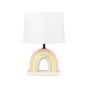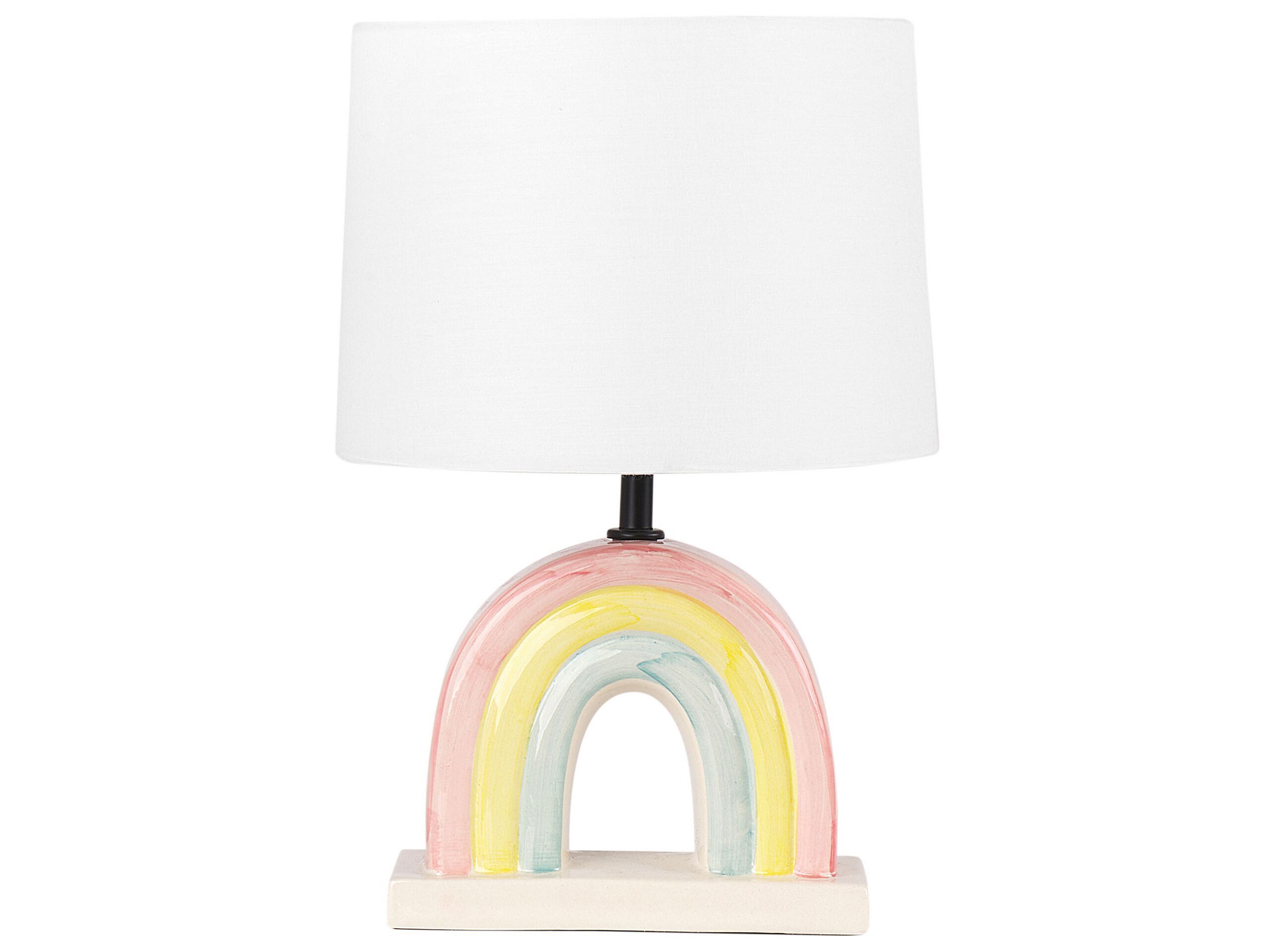 Bring a cheerful mood to your living space or your kid's room with this handmade table lamp. The piece features a multicoloured, rainbow-like base, which will definitely draw attention to the piece, and introduce an eclectic vibe to your space. The shade is made out of high-quality polyester and cotton blend, which makes it long-lasting and low maintenance. Details: Color: Multicolour, White. Main material: Ceramic. Additional material: Cotton, Polyester. Material Composition: 20% Cotton, 80% Polyester Weight: 1 Assembly: Partial Assembly Required