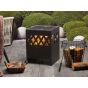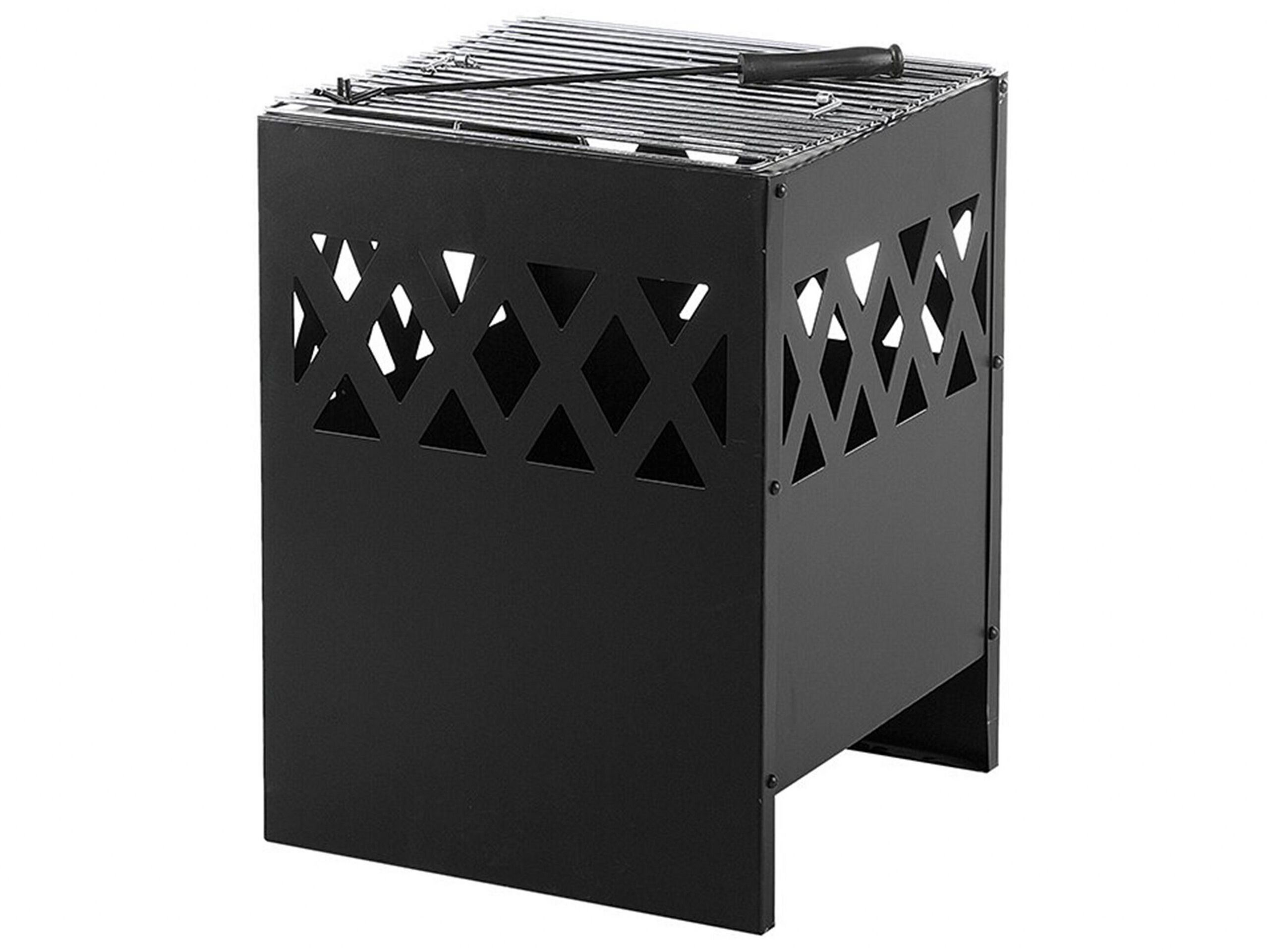 Introduce a cosy warm glow to any garden. This steel constructed box-shaped fireplace brings a classic design which complements any outdoor area from traditional to modern-day minimalistic. The fireplace can be easily filled with wood or coal, it includes a chrome BBQ grate which means any garden party is complete. Details: Color: Black. Main material: Steel. Weight: 11 Assembly: Full Assembly Required
