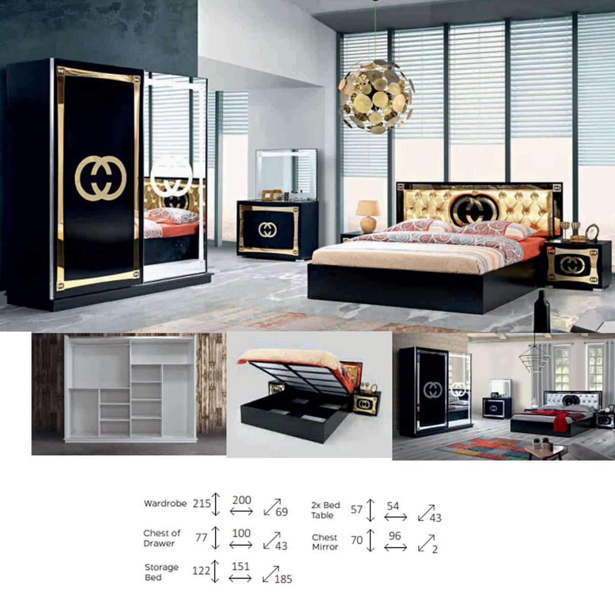 Luxurious set is available in different color, which develops a royal vibe to the living place and emphasizes the classical nature of set. The storage feature of bed makes it antique in the inventory and is remarkable by the customers. Header of the bed is designed according to new classical traditions and cultures of UK. The chest drawer contains a durable mirror and bedsides contain drawers for great storage purposes. Bedsides provide grace to the room and make it heaven. Wardrobe has two mirrored sliding doors with deluxe design and appropriate color combination. In the terms of shelves and hanging rails, it provides a great storage solution. The set is always easy to assemble and clean properties.
