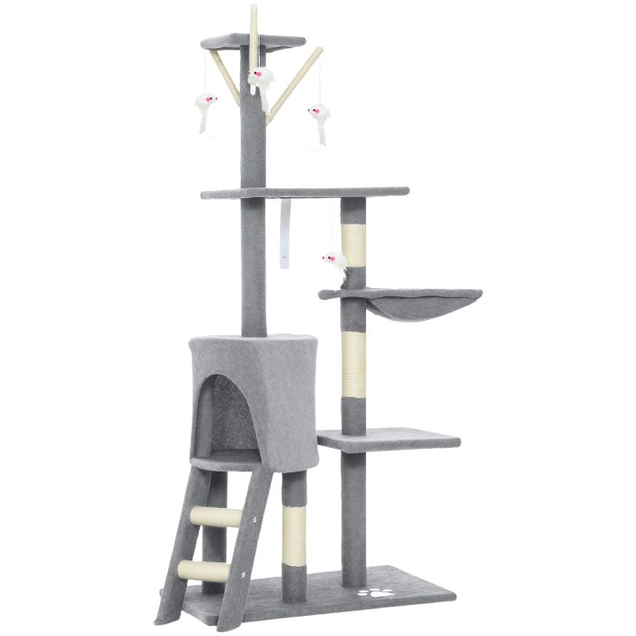 CHARNLEY Multi Level Cat Tree 134cm with Condo and Scratching Posts - Grey