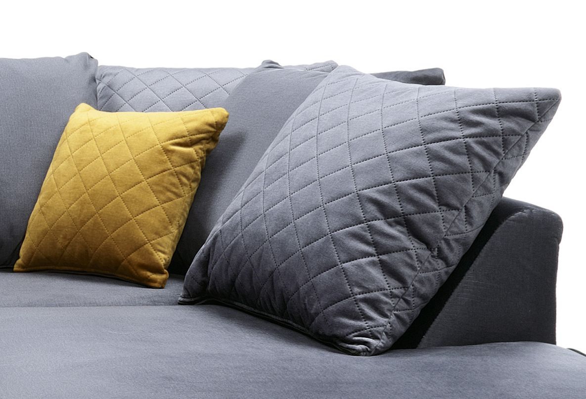 A sophisticated velvet corner sofa with fashionable and decisive clean lines. Available in understated, bold and neutral colour shades. Perfect for any contemporary living space. Angular arms, scatter cushions and a couple of tasteful toss pillows provide an elegantly modern look and feel. The luxurious feeling velvet fabric is coated with a special hydrophobic coating that will prevent stains, allowing you to simply wipe away accidental spills, spills that you know will happen! Short tapered legs give this corner beauty just enough lift to speak out its style.
