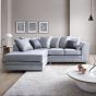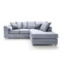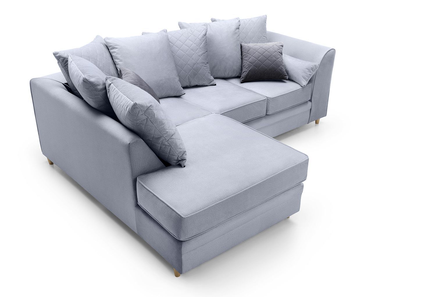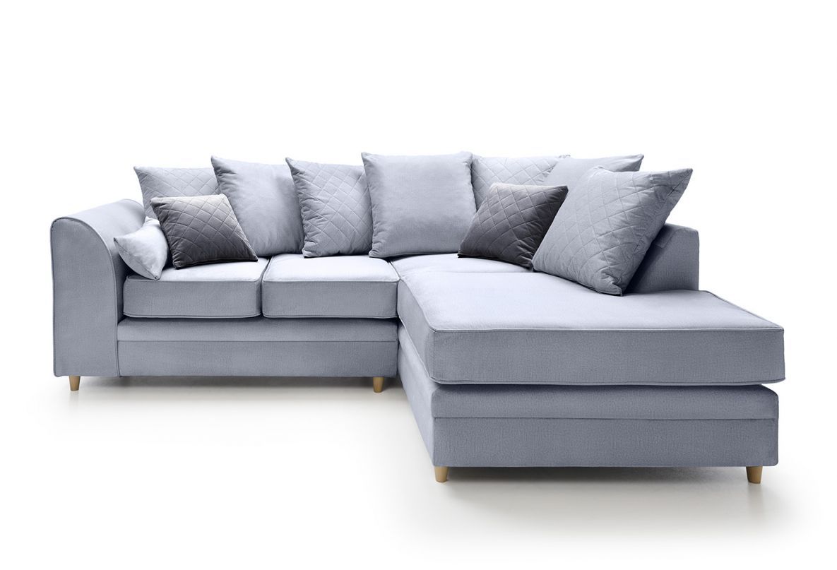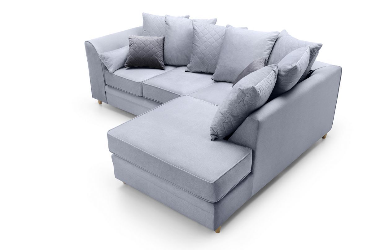 A sophisticated velvet corner sofa with fashionable and decisive clean lines. Available in understated, bold and neutral colour shades. Perfect for any contemporary living space. Angular arms, scatter cushions and a couple of tasteful toss pillows provide an elegantly modern look and feel. The luxurious feeling velvet fabric is coated with a special hydrophobic coating that will prevent stains, allowing you to simply wipe away accidental spills, spills that you know will happen! Short tapered legs give this corner beauty just enough lift to speak out its style.