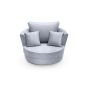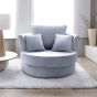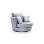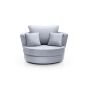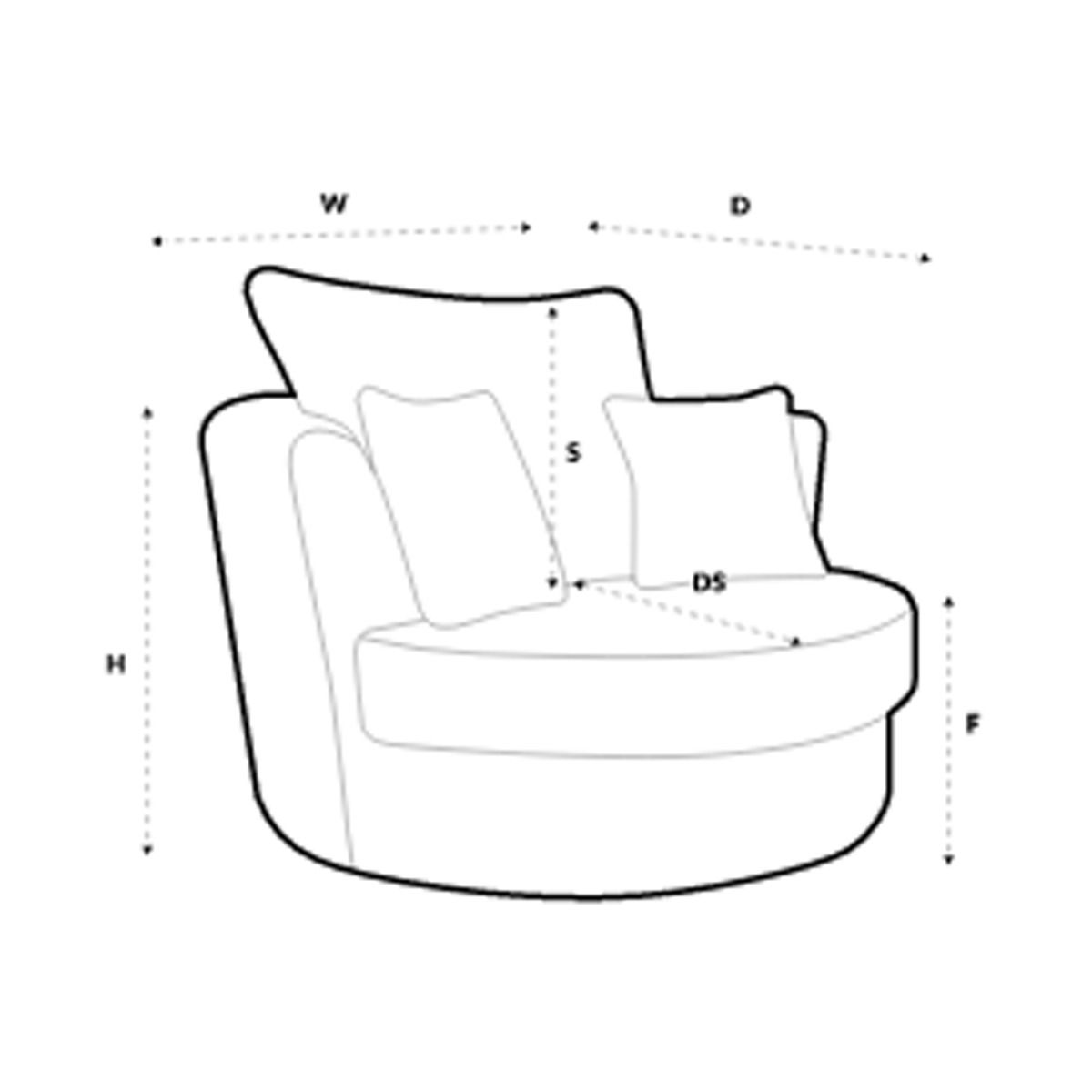 Swivel in style with this stunning 360° swivel chair. Generous for one and a very cosy for two, this might just be your new favourite seat in the house. A thick seat cushion, tall flared back and a couple of toss pillows rested on a half-moon pared back doubling as an armrest will leave you with nothing to complain about. You could be watching the telly one moment and swivel around to join the family conversation the very next moment. A stylish, comfortable and versatile chair, always at your service.