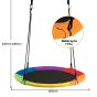 Everyone loves a swing and this swing is suitable for hanging from trees, swing frames or ceilings. The swing is made from a high-quality metal frame that is securely enclosed in soft, impact-absorbing foam for safety and comfort. The swing ropes are adjustable from 100cm to a maximum of 160cm, this swing is suitable for children of different heights. With a 150kg weight capacity and a giant 100cm platform, it is roomy enough for children to swing and play together! The swing provides a relaxing spot for your children to play, read, and /or listen to music. Children will love the feeling of flying and it can also help with balance. The swing can be easily taken down and stored or taken to the park or friend's garden. This multicolour saucer tree swing will be one of your child's favourites! Don't hesitate to order it now!