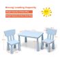 Material: PP Dimension of table: 77 x 55 x 50cm (L x W x H) Dimension of chair: 36 x 35 x 67cm (L x W x H) Net weight of table: 4kg Net weight of each chair: 2kg Total