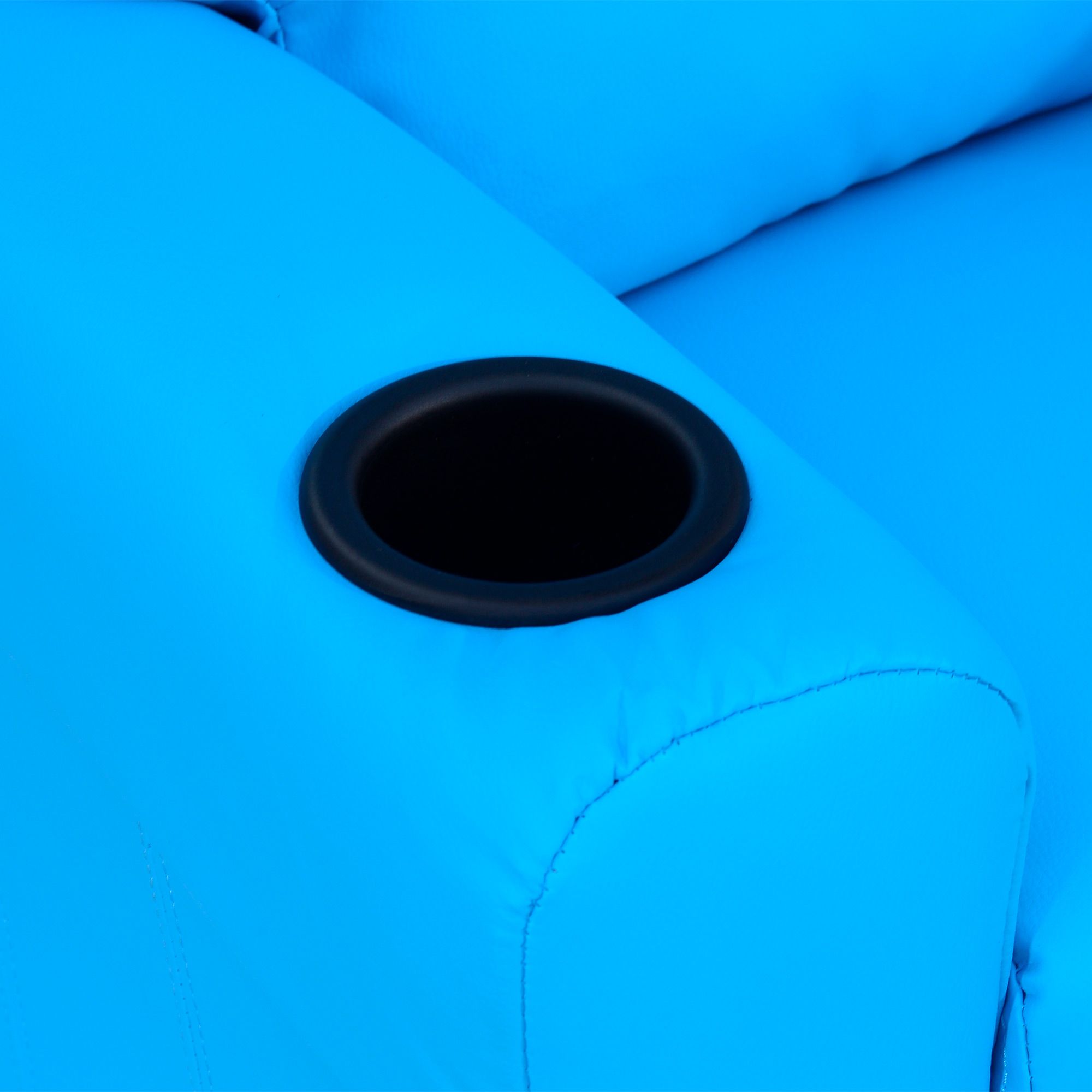 - Child-size recliner easily reclining up to 150° with raising footrest