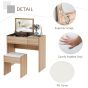 The stylish dressing table set from comes with a multi-purpose dressing table and a padded stool. The flip-up design allows you to easily convert the dressing table with a mirror to an ideal writing desk with hidden storage space under the lid. The slide-out drawer offers added space. With smooth leather and soft sponge, the padded stool provides added comfort. Constructed with 16 mm-thick E1 chipboard, the table set is eco-friendly and ensures long-lasting use.