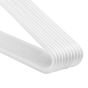 Specially designed with an open end, these metal clips have the smart and compact design, which can make full use of the space and suitable to serve in any home, office or clothing store.Note:Please do not place these hangers in a hot and humid place during use.Please wipe them with a wet cloth for cleaning.Parameters:Material: metal + PVC coatedColour: whiteDimensions: 38 x 13 cm (W x H)Net