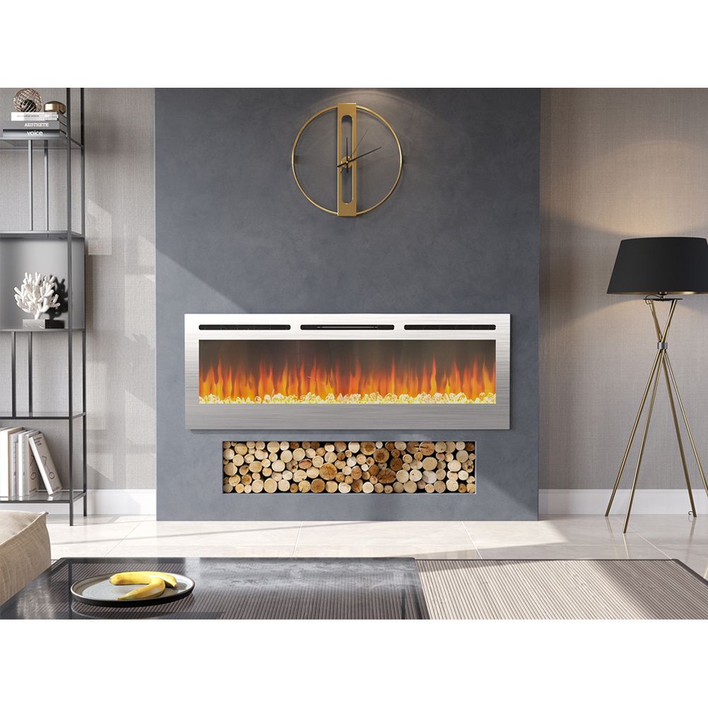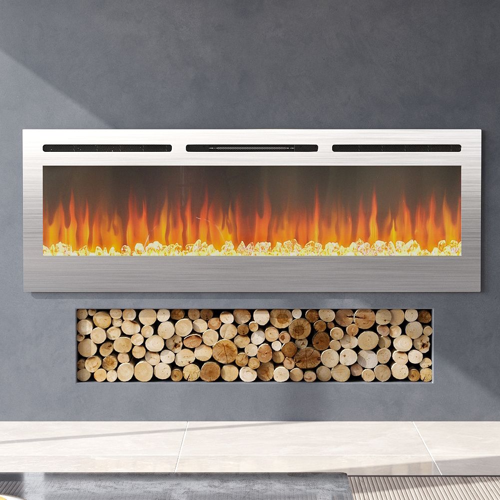 Chrome Recessed Linear Electric Fireplace - 152.4cm W