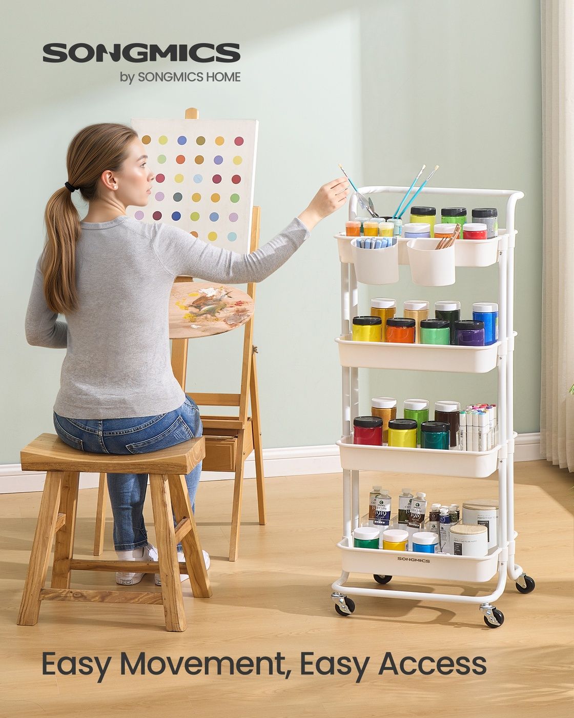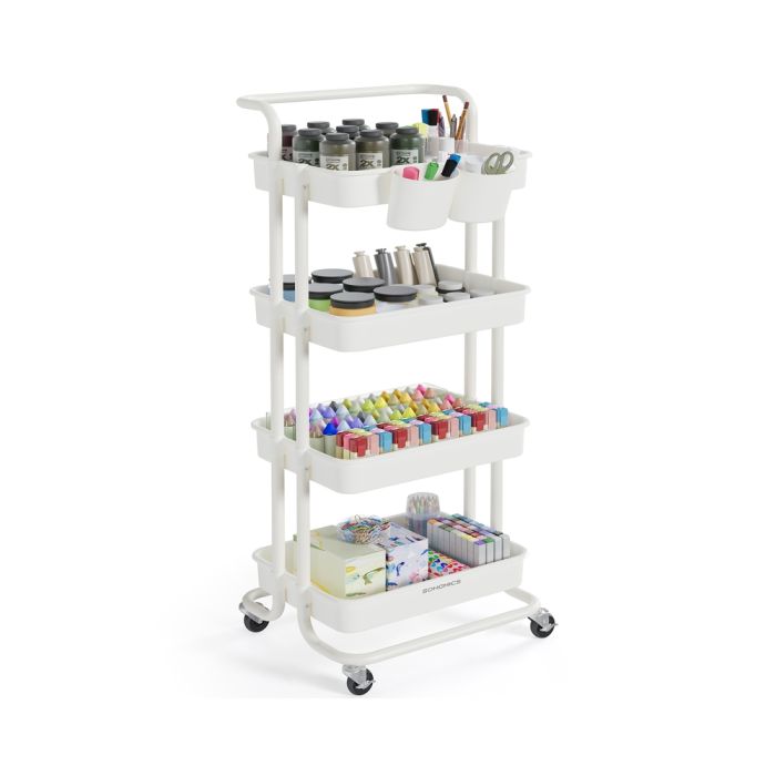 Enhance your interior with the CINDERWICK 4 Tier Kitchen and Dining Trolley - White. This versatile furniture piece offers a stylish way to organise your home while adding a modern touch to any room. Crafted from steel frame, plastic baskets, it provides a strong and reliable structure for everyday use. An excellent addition to minimalist and modern décor. It combines practicality with contemporary appeal. Thoughtfully designed for simple setup and durability.