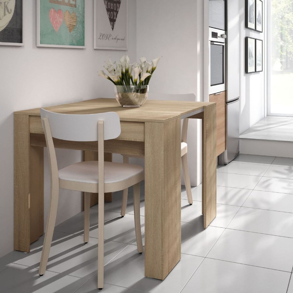 - Internal Storage: The table includes internal storage for extension panels, ensuring convenient storage when not in use and keeping your dining area organized.