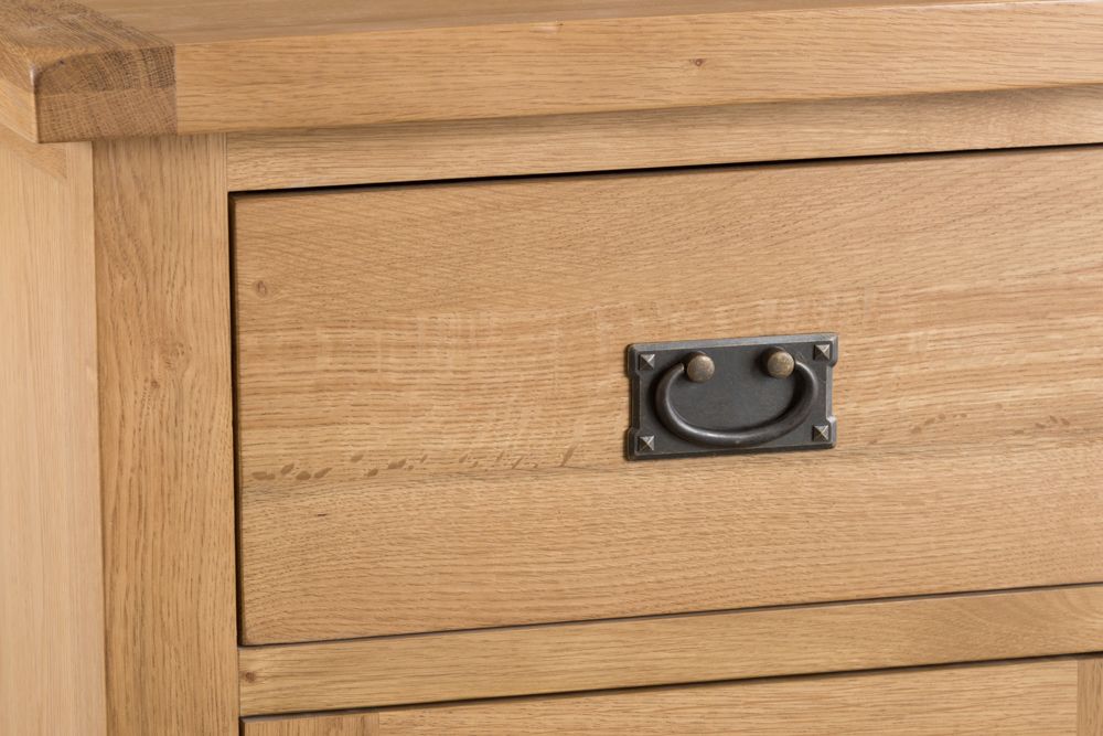 This oak collection is one of the most diverse available today, meaning that you can find the perfect item, whatever the style or size of home. Beautifully made with a natural finish and antique brass effect handles for a rustic feel that brings a relaxed look to your home.