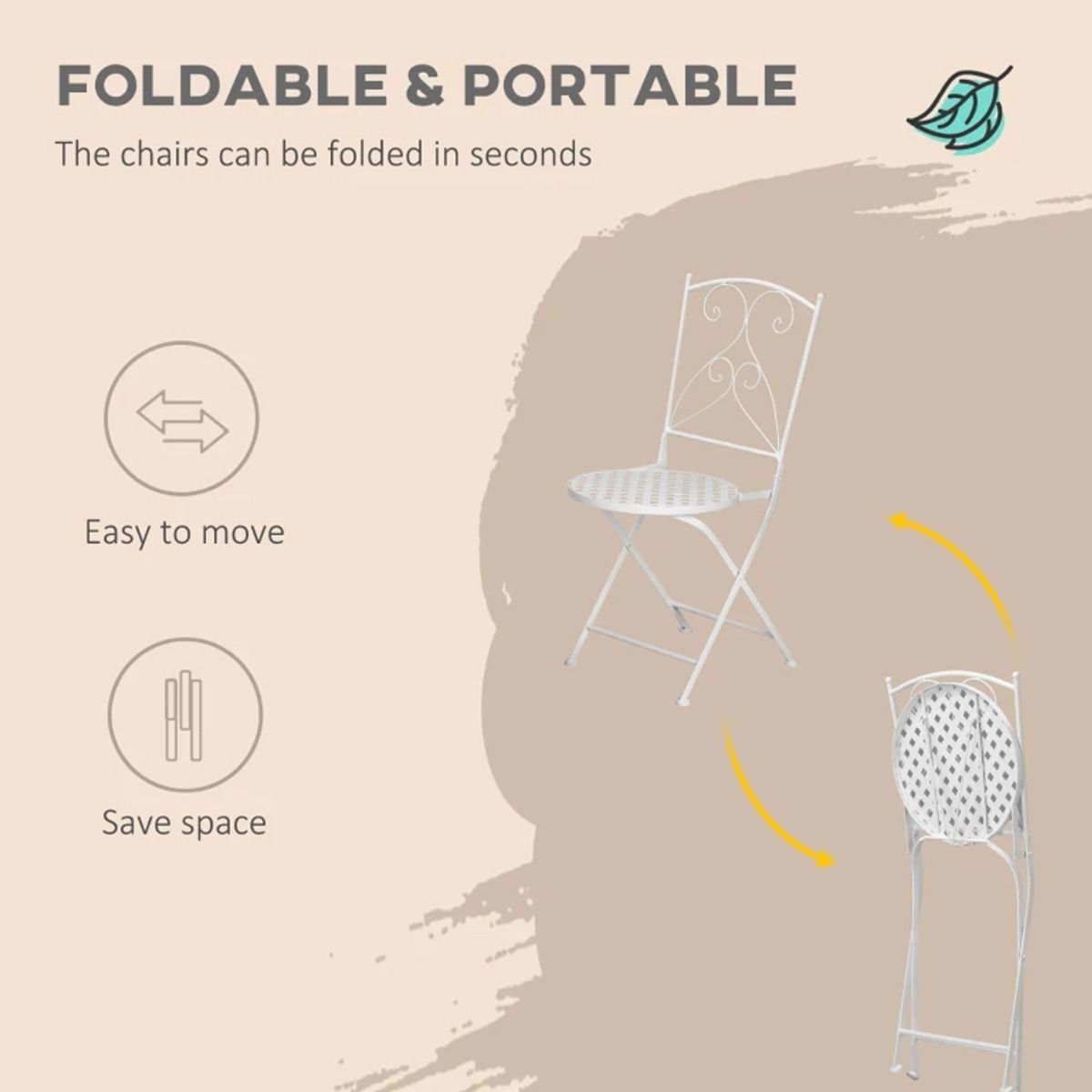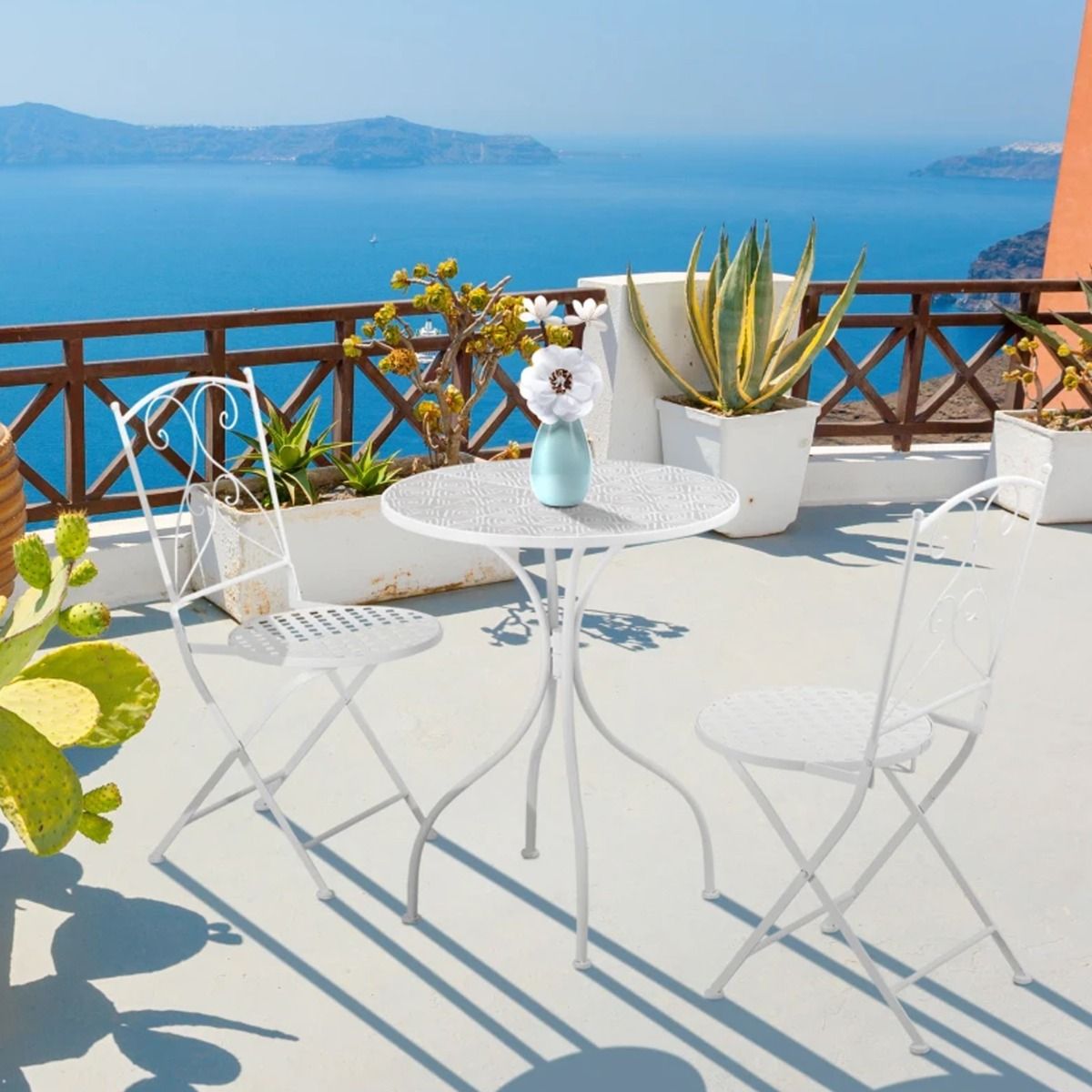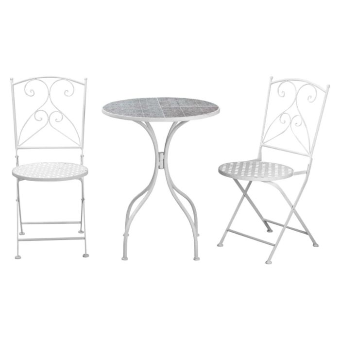 Classic Design Metal Frame 3 Pcs Foldable Garden Bistro Set with 2 Chairs and Table - White