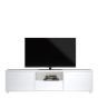 This Media TV unit is traditional design and produced with an easy to clean foil surface. Made and manufactured in Denmark. It features a simple, low-profile, multifunctional design to keep all your media components organized. The simple yet appealing includes three media compartments and one drawer including one shelf behind each door for additional storage.