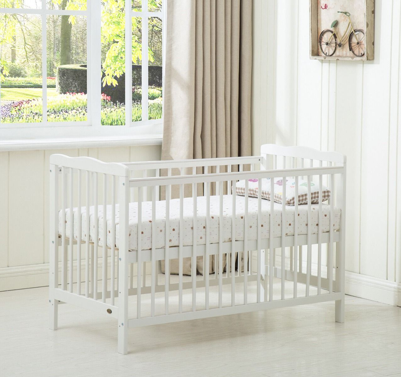 Classic Solid Pine Wood Baby Cot Crib With Water Repellent Mattress - White