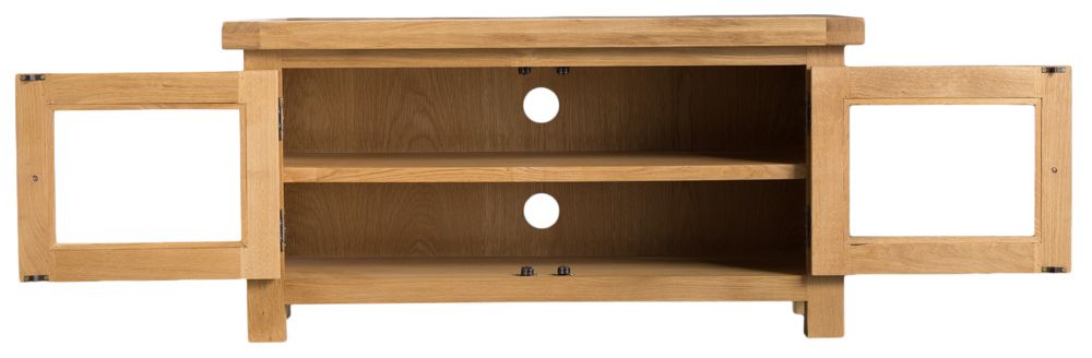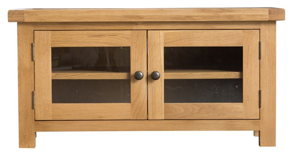 Classic Standard TV Unit with Glass Doors - Medium Oak Finish