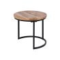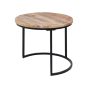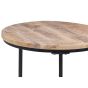 This set comprises two coffee tables that provide ample space and storage choices. The smaller round table neatly slots under the tabletop of the larger one, making it ideal for rooms with limited space. Crafted from a blend of metal frames and light-toned mango wood countertops, these tables exhibit natural knots and rings that exude charm. The semi-open frame design introduces a hint of industrial style.