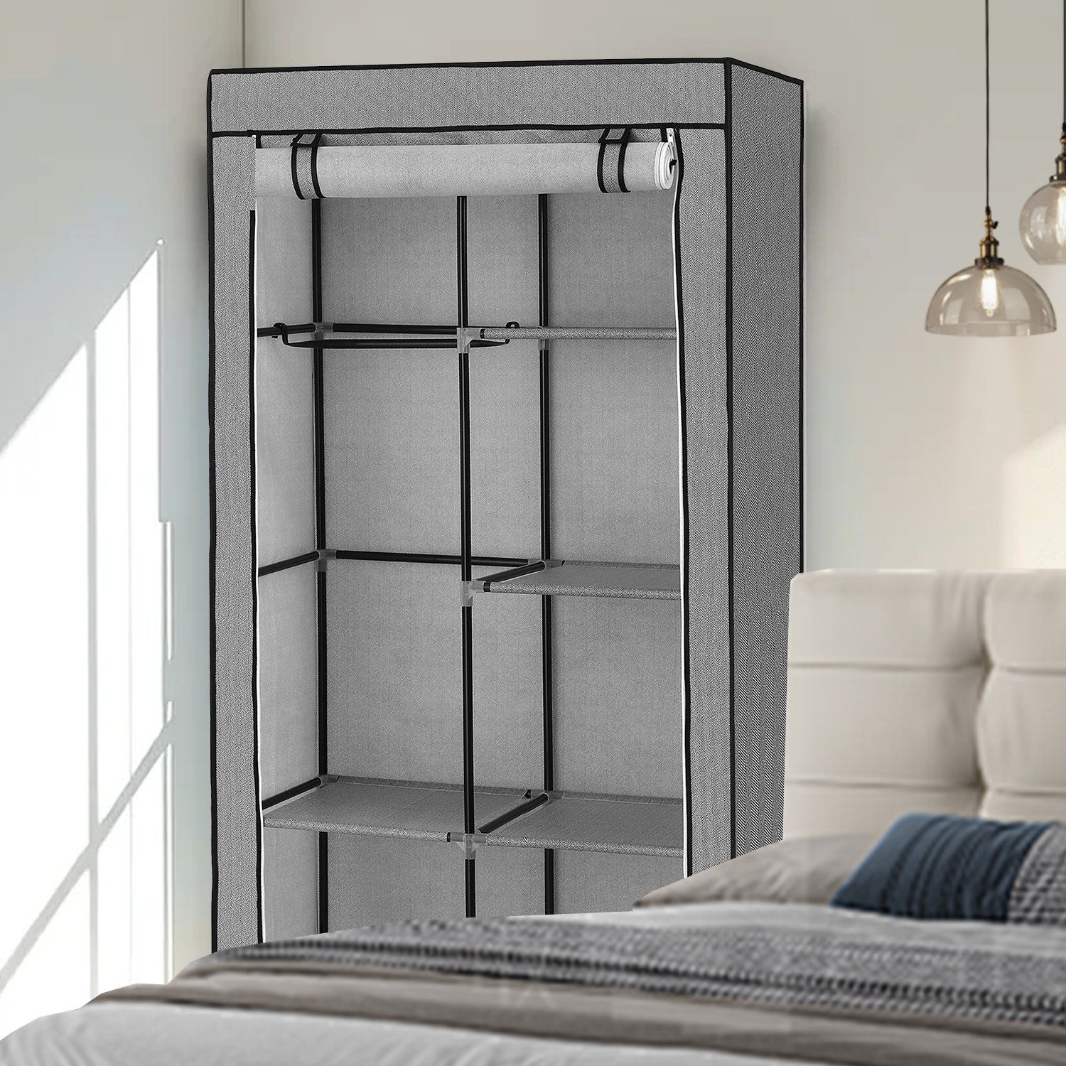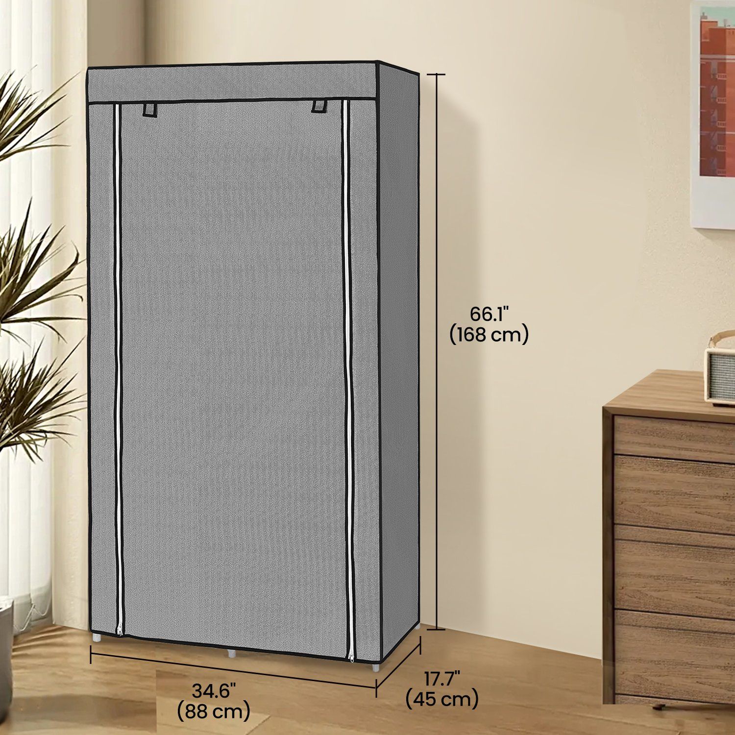 Closet Organizer - ZARNIA Portable Non Woven Cover with Rods and Shelves - Light Grey