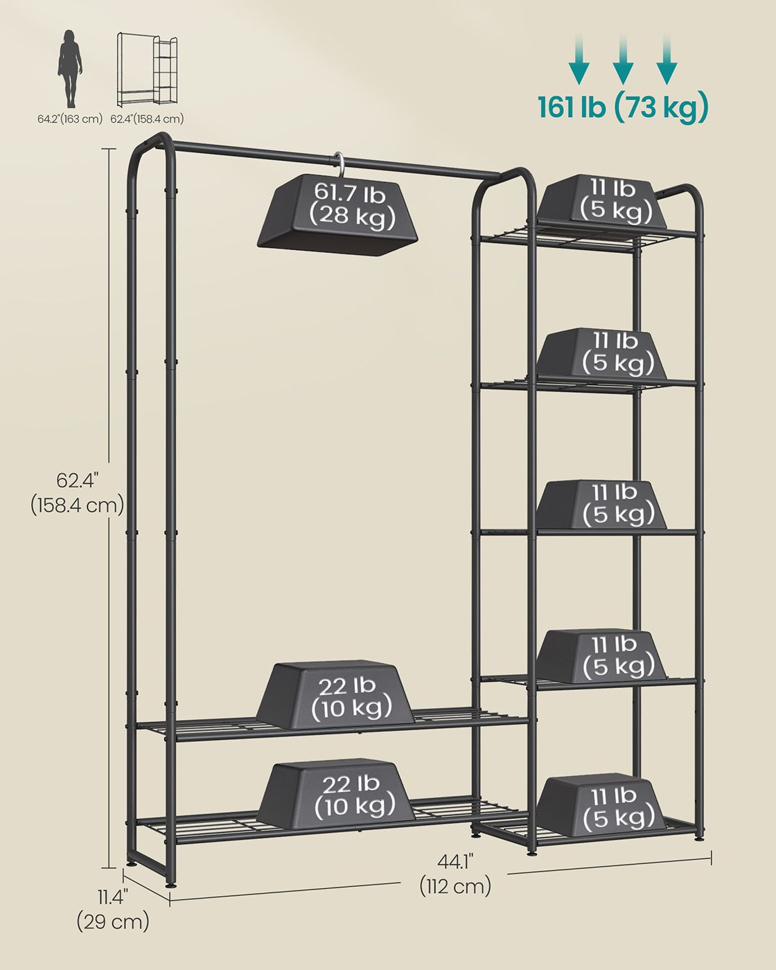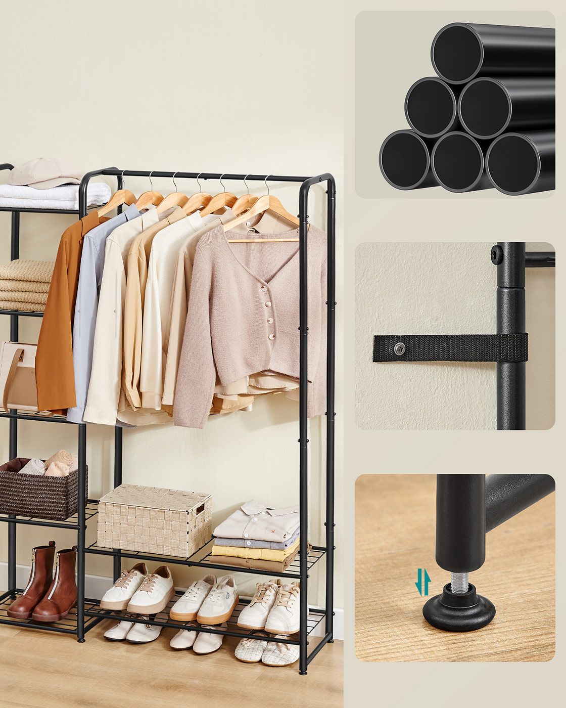 Clothes Rack - FINNIA Open Wardrobe Metal Clothes Rack - Black