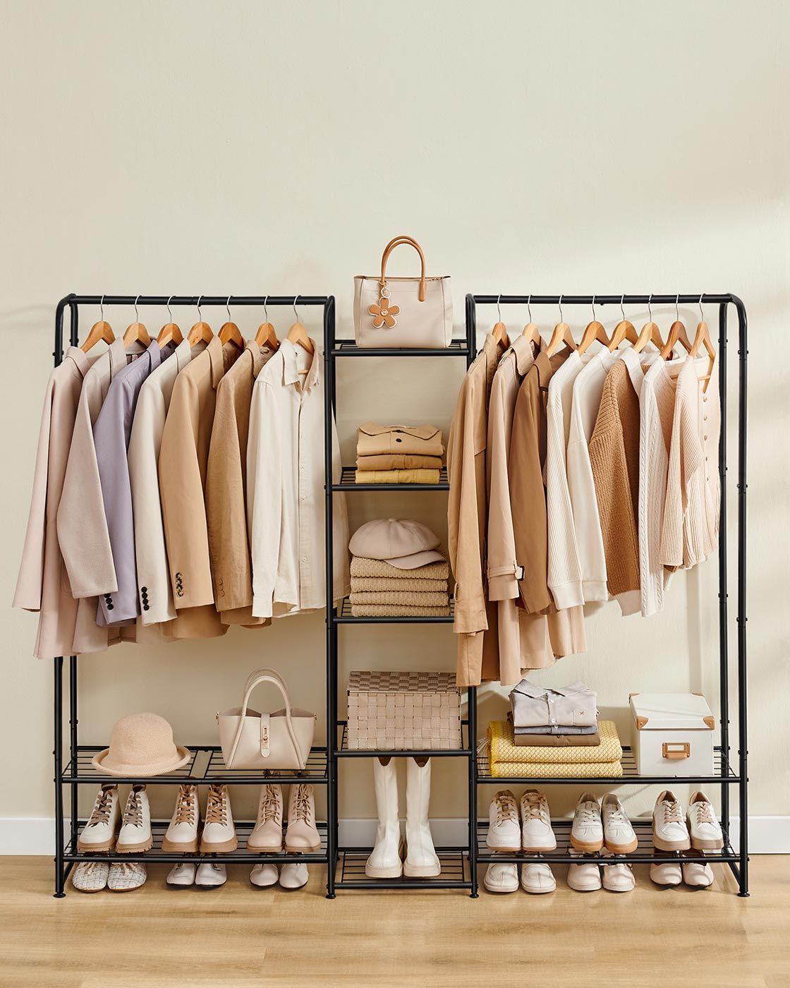 Clothes Rack - FINNIA Open Wardrobe with Storage Shelves - Matte Black