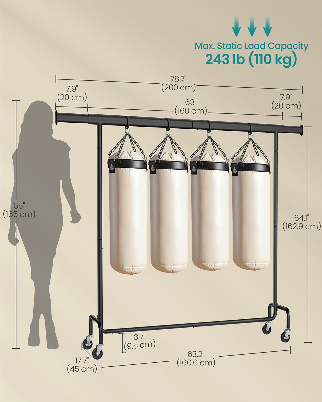 Clothes Rack - FIONIA On Wheels Extendable Hanging Rail - Matte Black