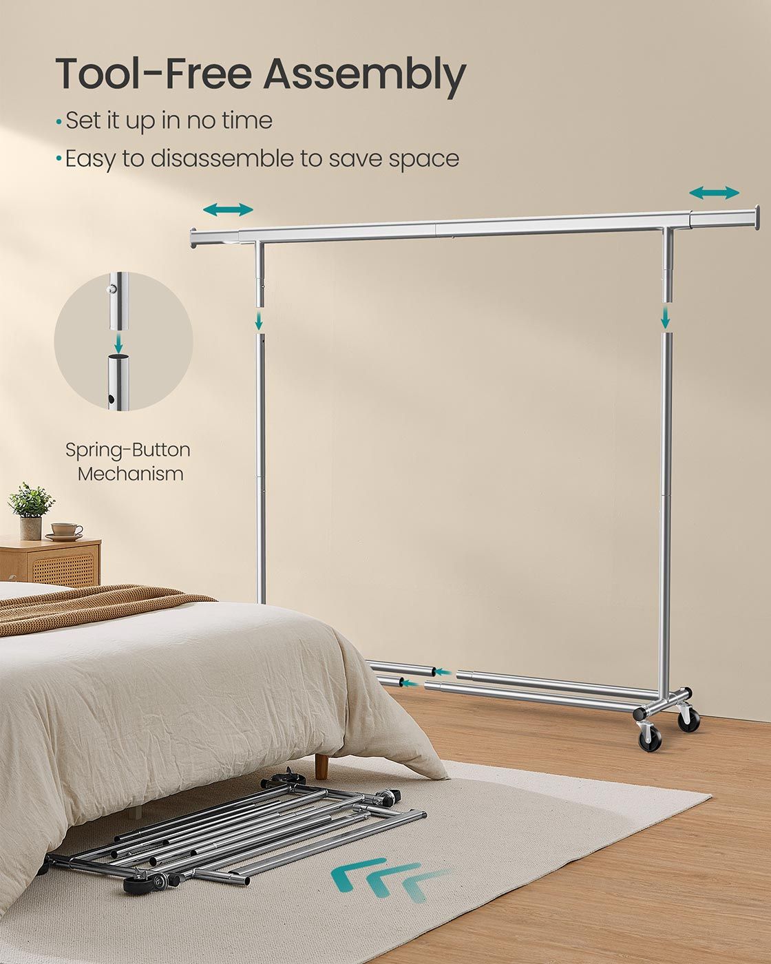 Clothes Rack - FIONIA Rolling Clothes Rack 150 kg Load - Silver