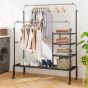 Clothes Rack - Rolling Clothes Drying Rack with 2 Adjustable Hanging Bars-Black Silver