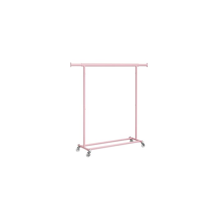 This heavy-duty clothes rack on wheels in Jelly Pink is your ultimate laundry solution. Its extendable hanging rail offers ample space, supporting up to 90 kg. Designed for easy assembly and portability, it's perfect for organizing your clothes, whether in a laundry room, bedroom, or for temporary storage.