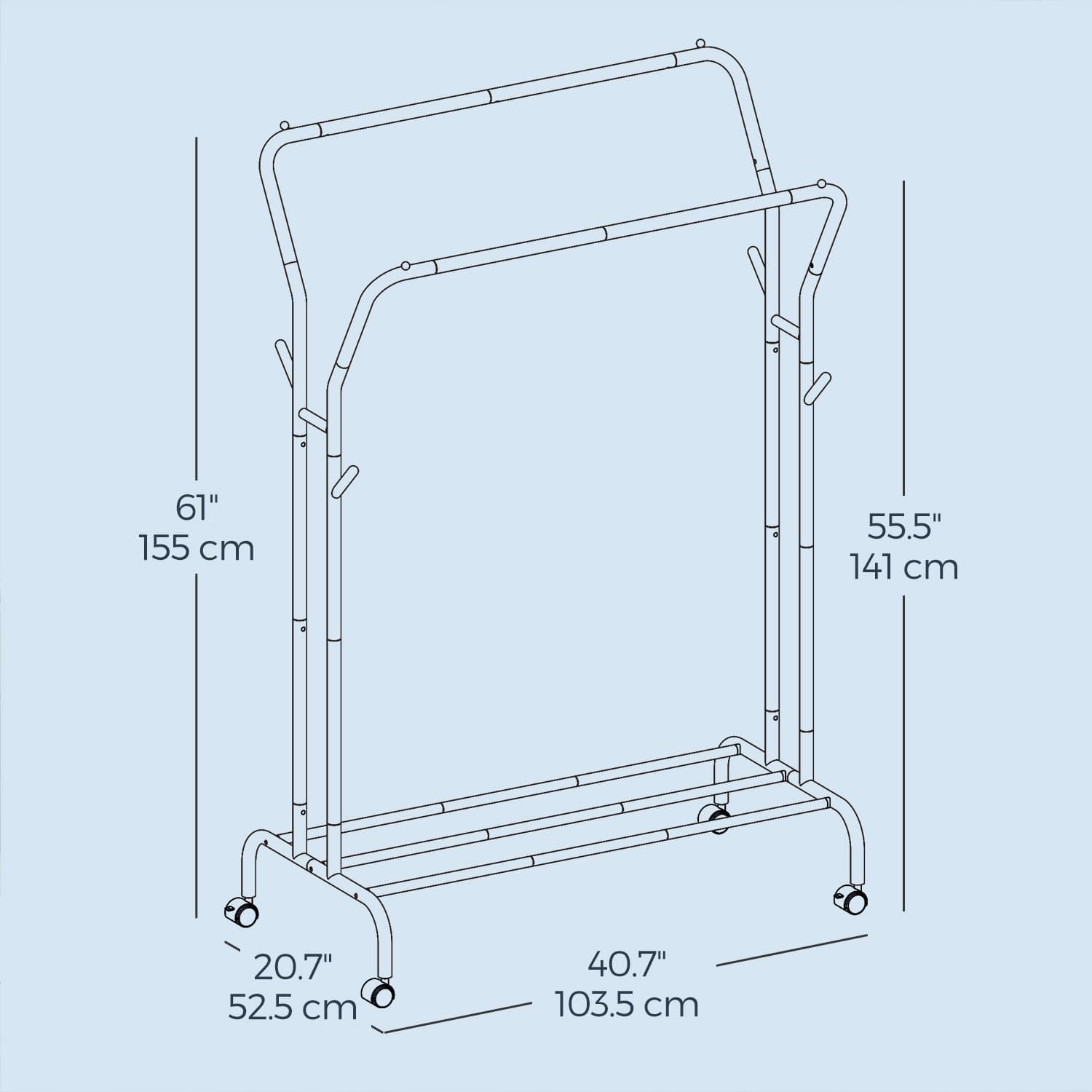 Clothes Rack - TARVA Double-Rod Heavy Duty with Wheels - Black