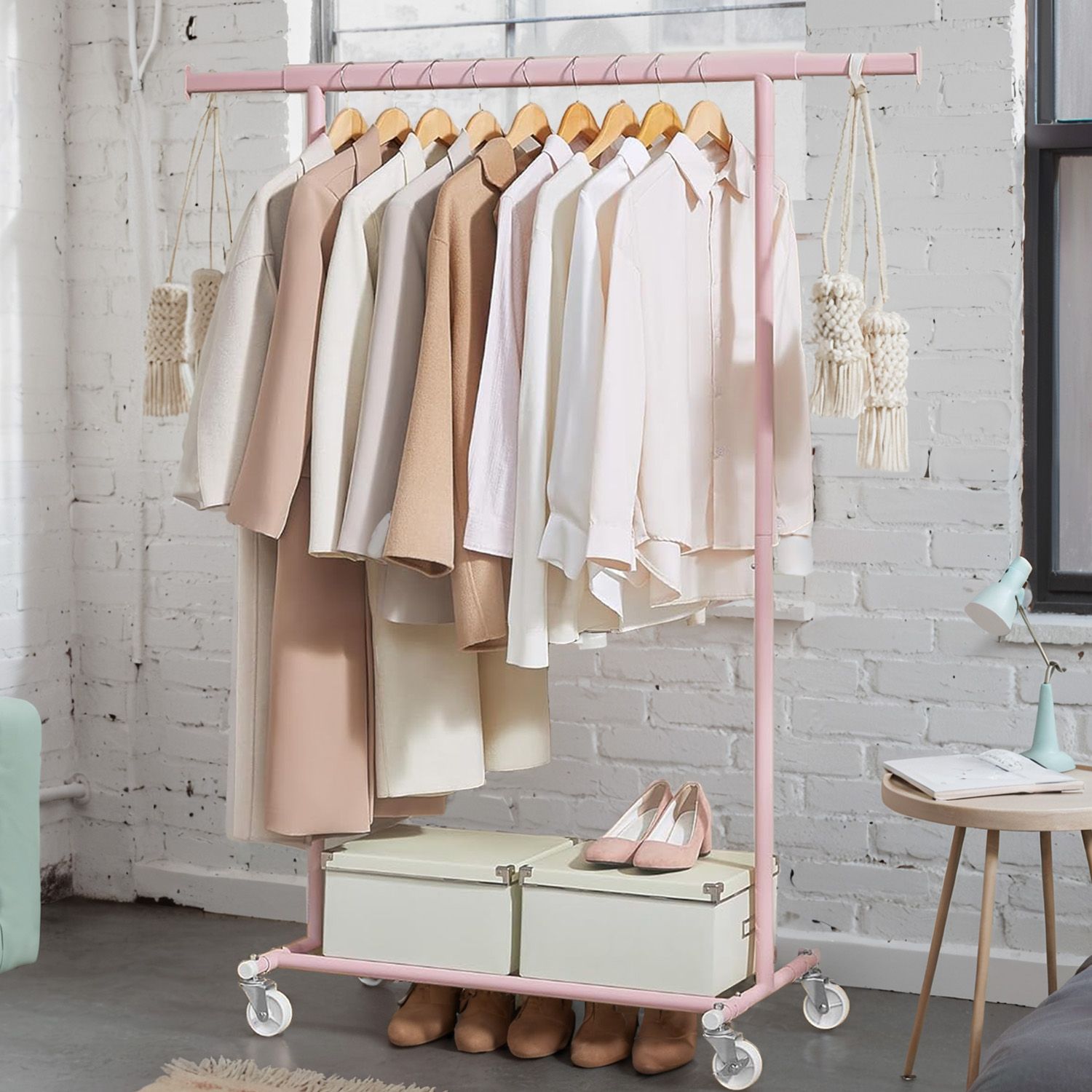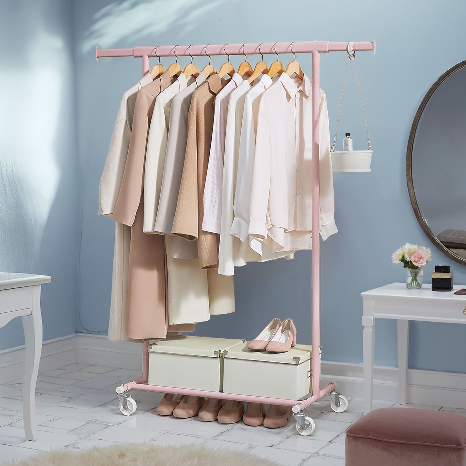 Clothes Rack - TARVA Heavy Duty Clothes Rack on Wheels - Jelly Pink