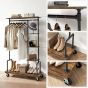 Clothes Rack - TARVA Mobile Clothing Rail on Wheels - Brown Black