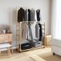 The bamboo clothes rack provides a natural solution for organising your space, combining practical design with sturdy functionality. Stable and durable: Bamboo is lightweight, water-resistant, and strong, making it a great choice for various applications, including furniture, construction, crafts, and decorative items.Ample storage: The coat rack features the hanging rod for organising your clothes, ensuring everything is within easy reach. The shelf is ideal for storing boxes and shoes.Flexible movement: With wheels and brakes, you can move it to the ideal position with a simple push, easy to adjust the space layout according to your needs.Versatile use: The clothes rack adapts to various spaces, whether in the bathroom as a towel rack, in the hallway as a coat stand, or in the bedroom or dressing room as a clothes rail, bag holder, and more.