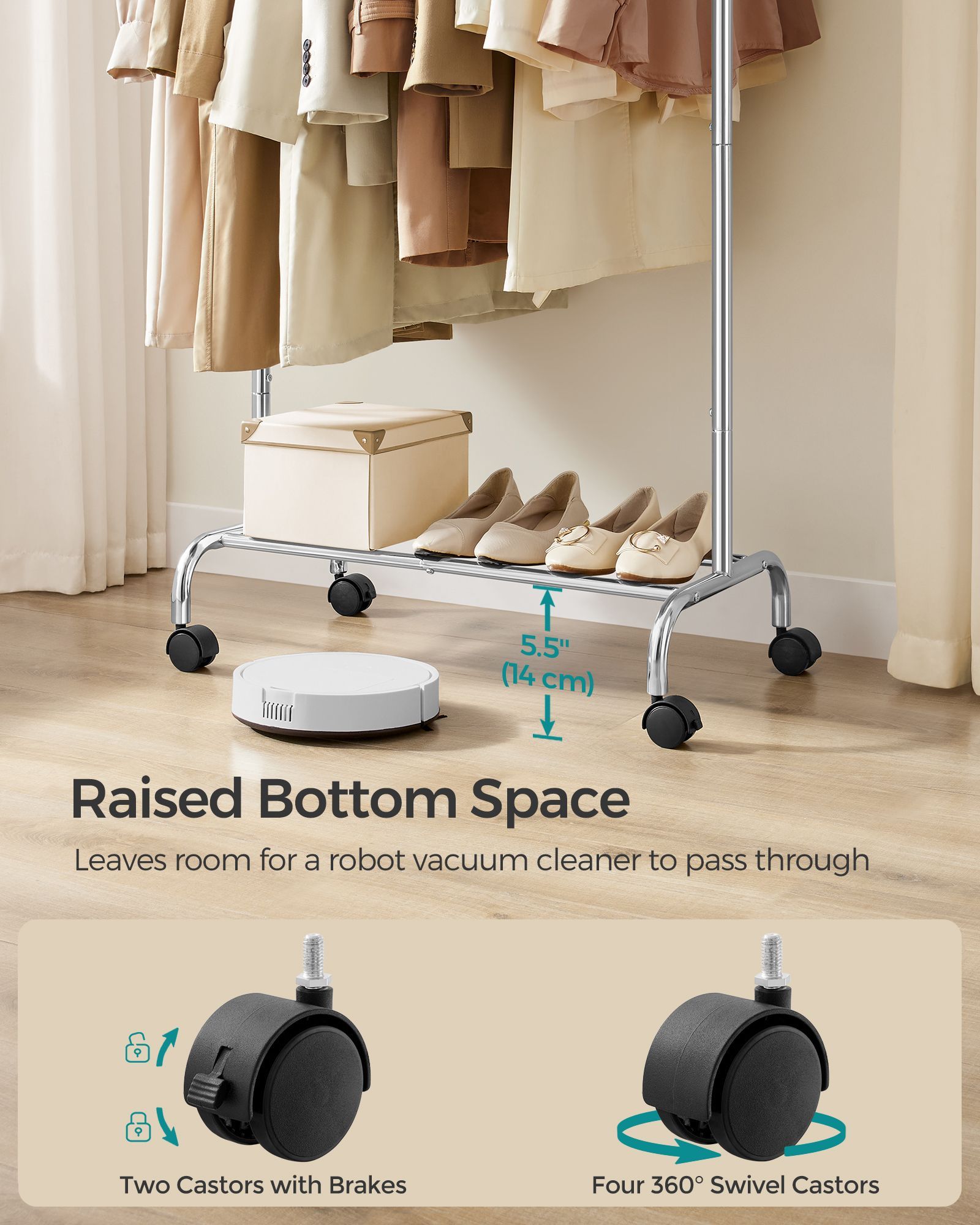Clothes Rail - FIONIA Extendable Hanging Rail with Wheels - Dove Grey