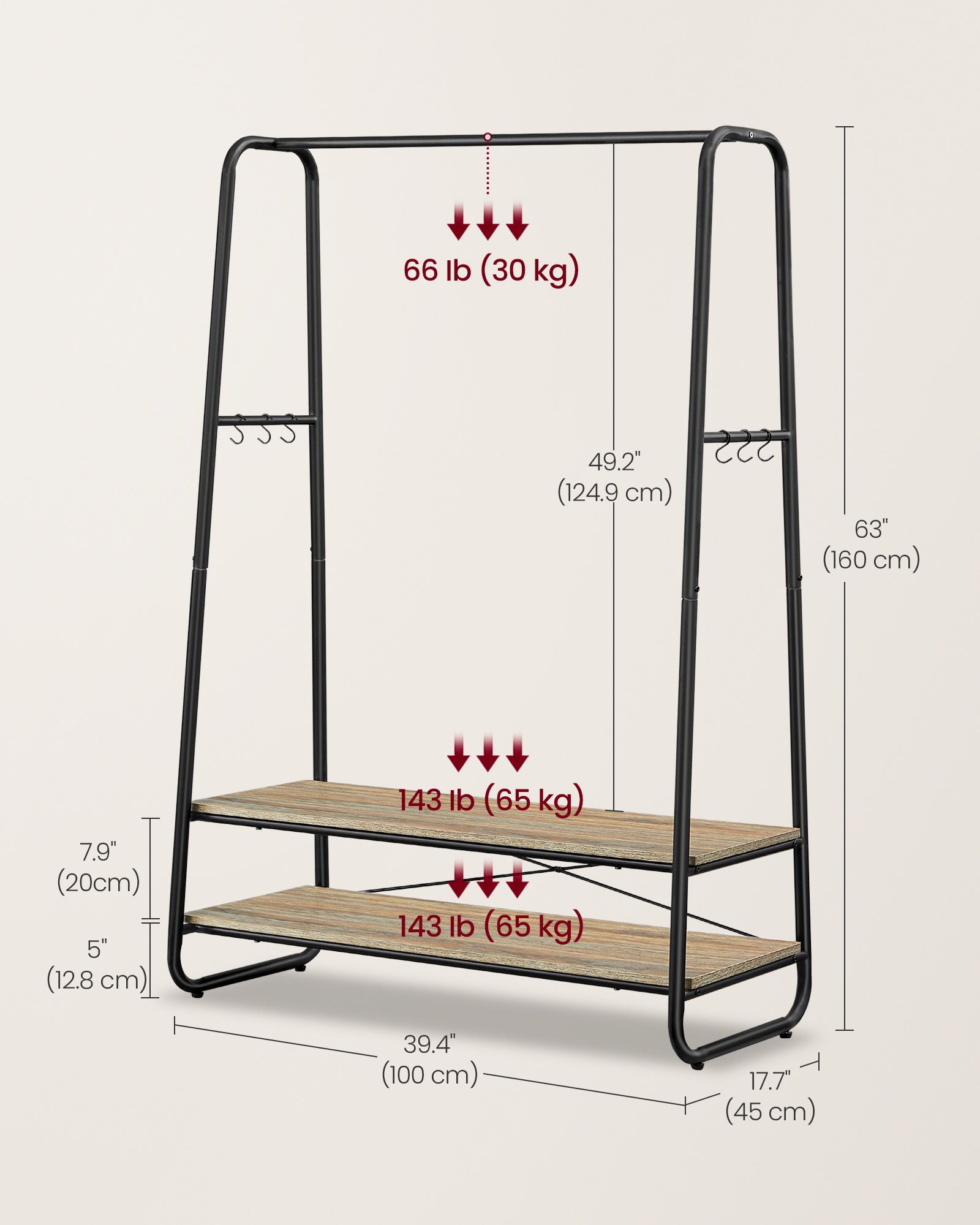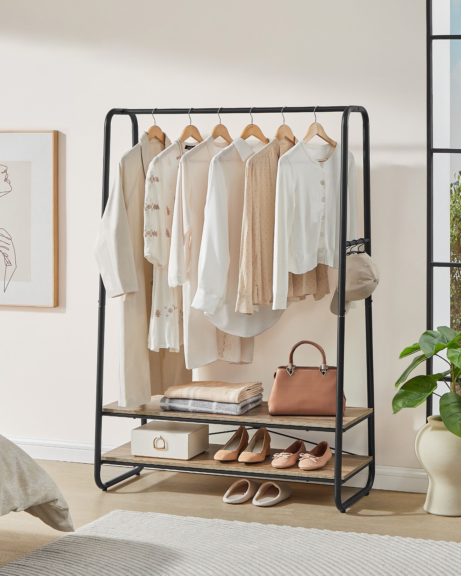 Clothes Rail - VIVRO Double Rail With 2 Shelves - Turquoise Brown and Matte Black