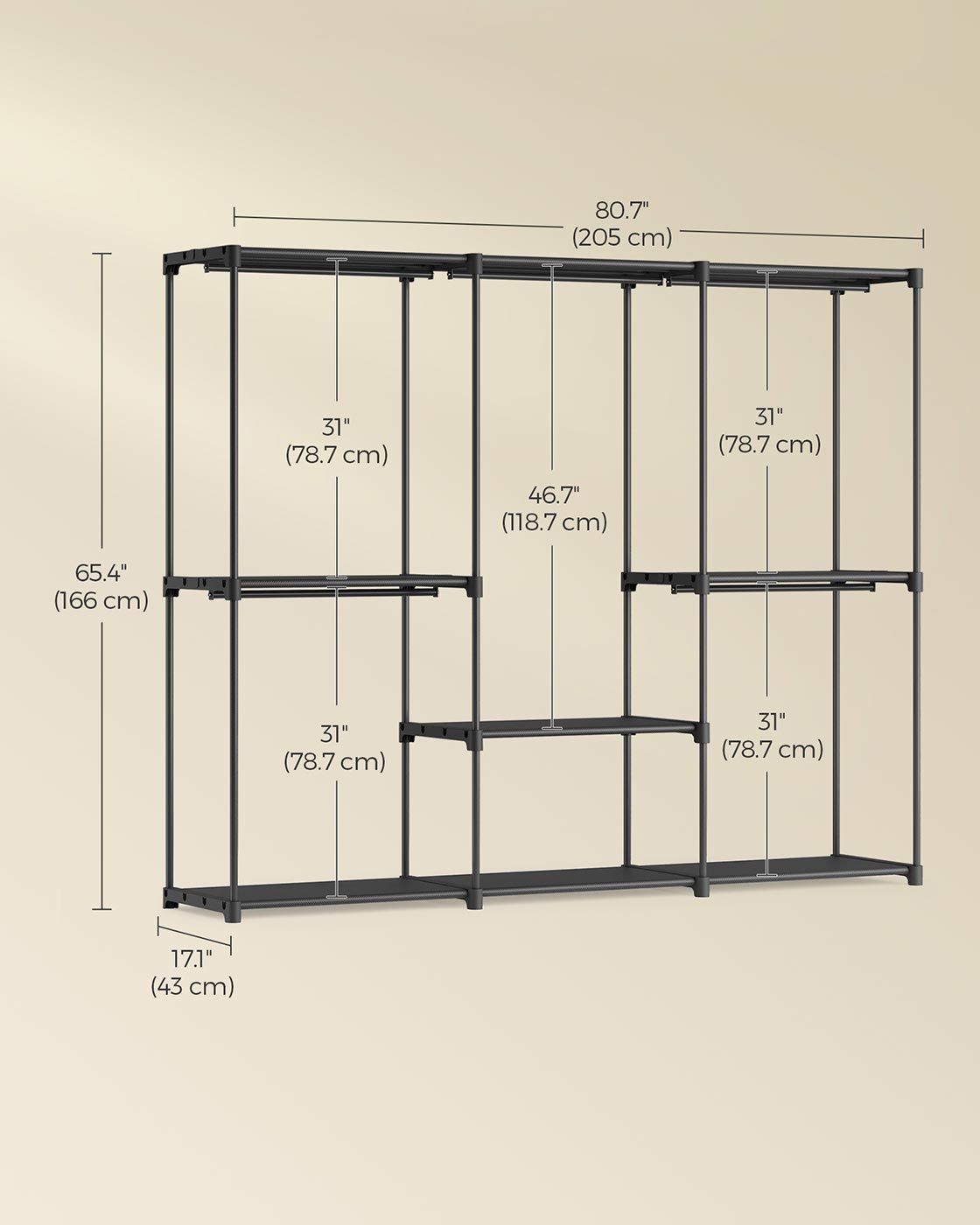 Clothes Wardrobe - LUMNZA Portable Closet 205 x 43 x 166 cm - Black